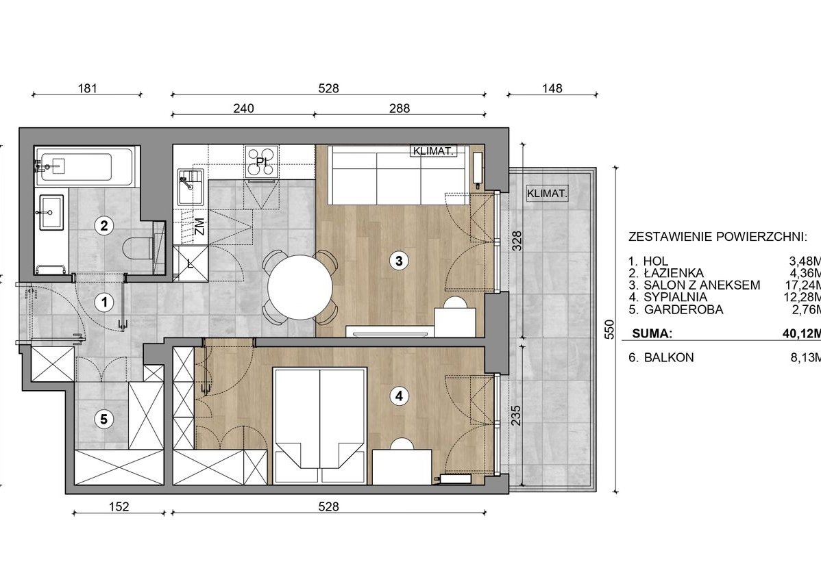 2 pokoje | powierzchnia 40,12 m² | poziom +3 | południowa ekspozycja