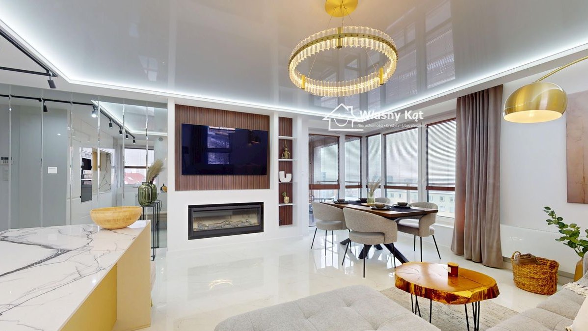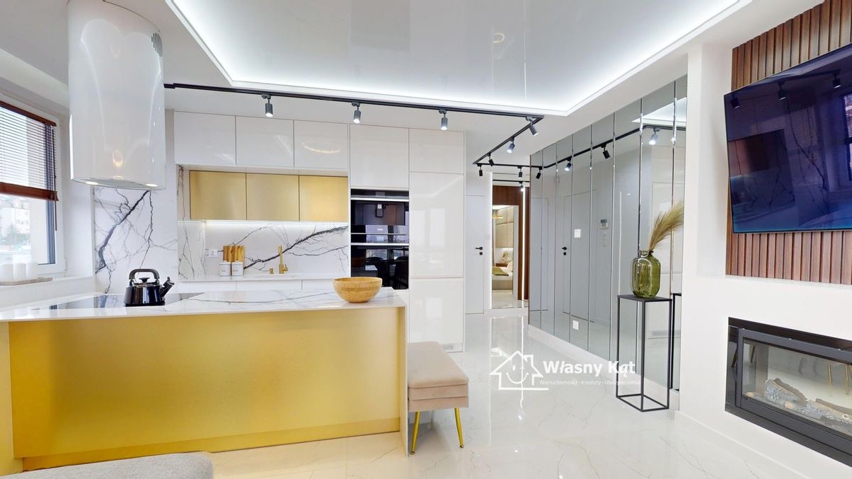 Apartament został zaprojektowany przez pracownię projektową, a jego wykończenie wykonano w standardzie premium. Wszystkie zabudowy meblowe wykonano na indywidualne zamówienie, dzięki czemu przestrzeń została maksymalnie wykorzystana.
