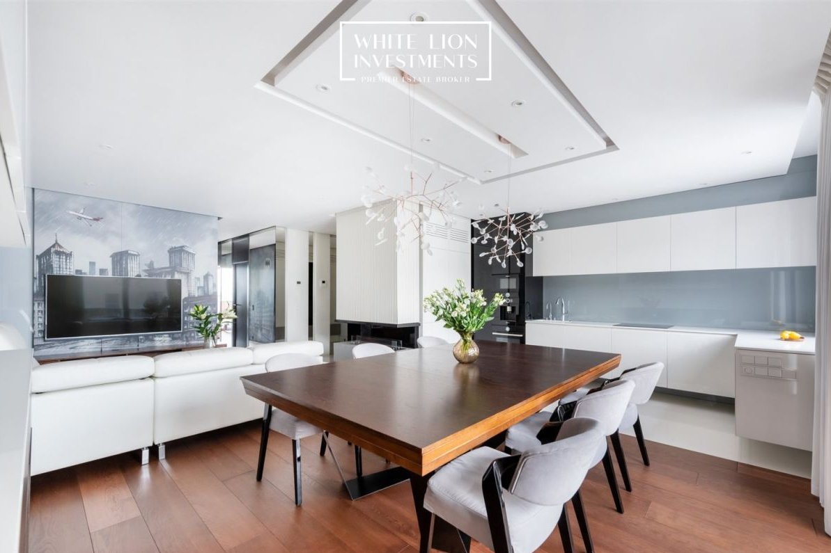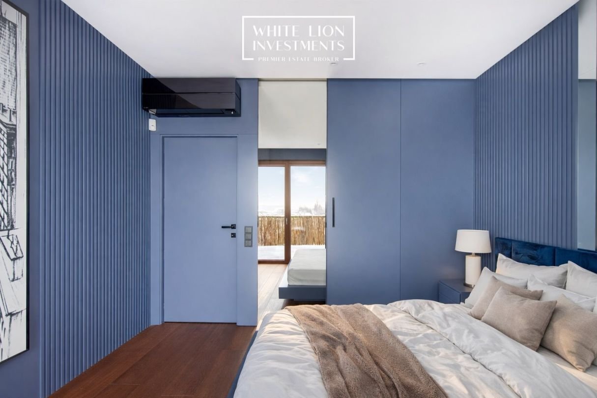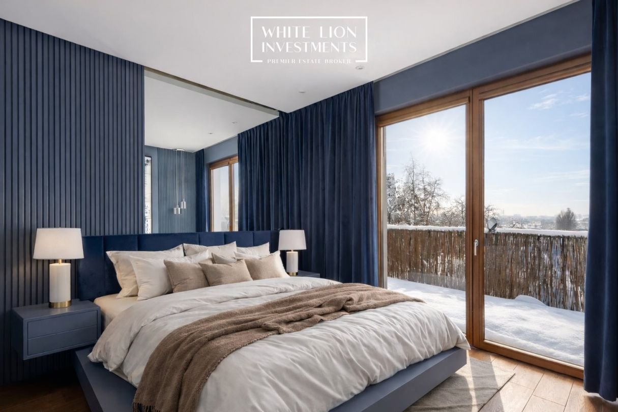 Ten apartament to unikatowe połączenie bezkompromisowej jakości i nastrojowego designu, gdzie materiały premium, takie jak dębowe podłogi i włoskie spieki, współgrają z autorskim oświetleniem oraz meblami wykonanymi na indywidualne zamówienie. Wyjątkowy klimat wnętrza podkreśla nowoczesny biokominek oraz imponujące przeszklenia panoramiczne sięgające od podłogi do sufitu, które idealnie doświetlają przestrzeń i zacierają granicę między salonem a naturą. Całość dopełnia unikatowa ekspozycja z oknami wychodzącymi na wschód i zachód.