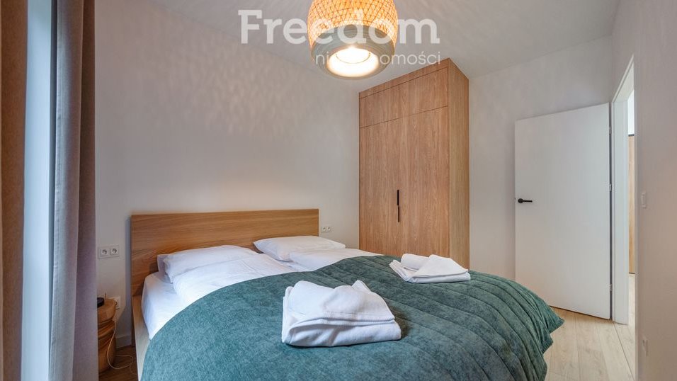 Wnętrze zostało urządzone w jasnym, nowoczesnym stylu, z wykorzystaniem naturalnych materiałów i spokojnej kolorystyki, co zapewnia komfort i przyjemną atmosferę wypoczynku.