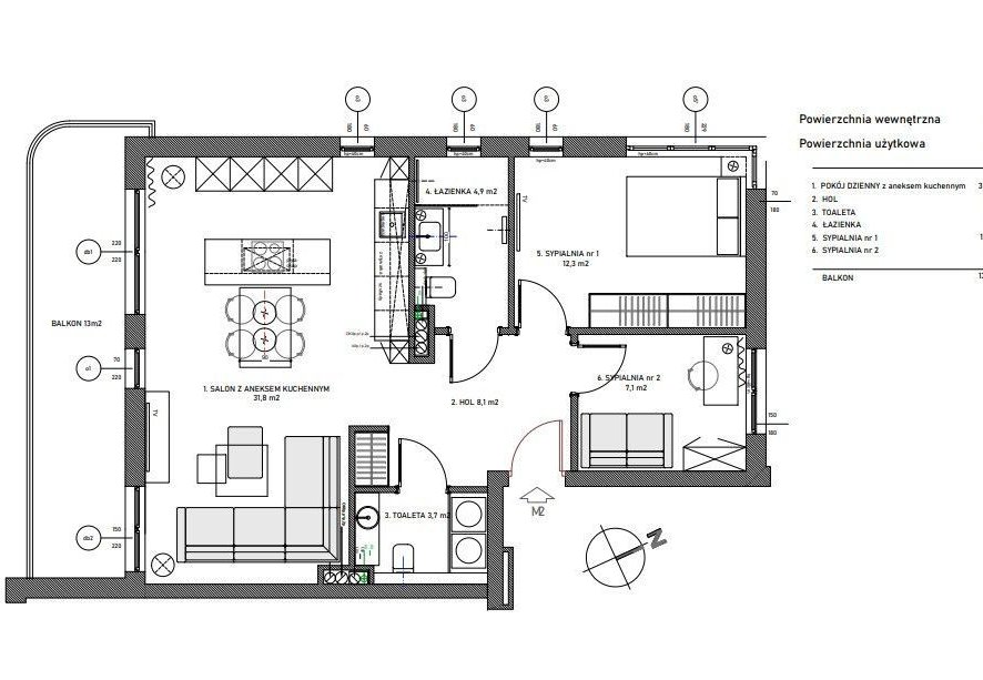 Z salonu wyjście na piękny, 13 metrowy balkon. Możliwość wydzielenia czwartej sypialni.