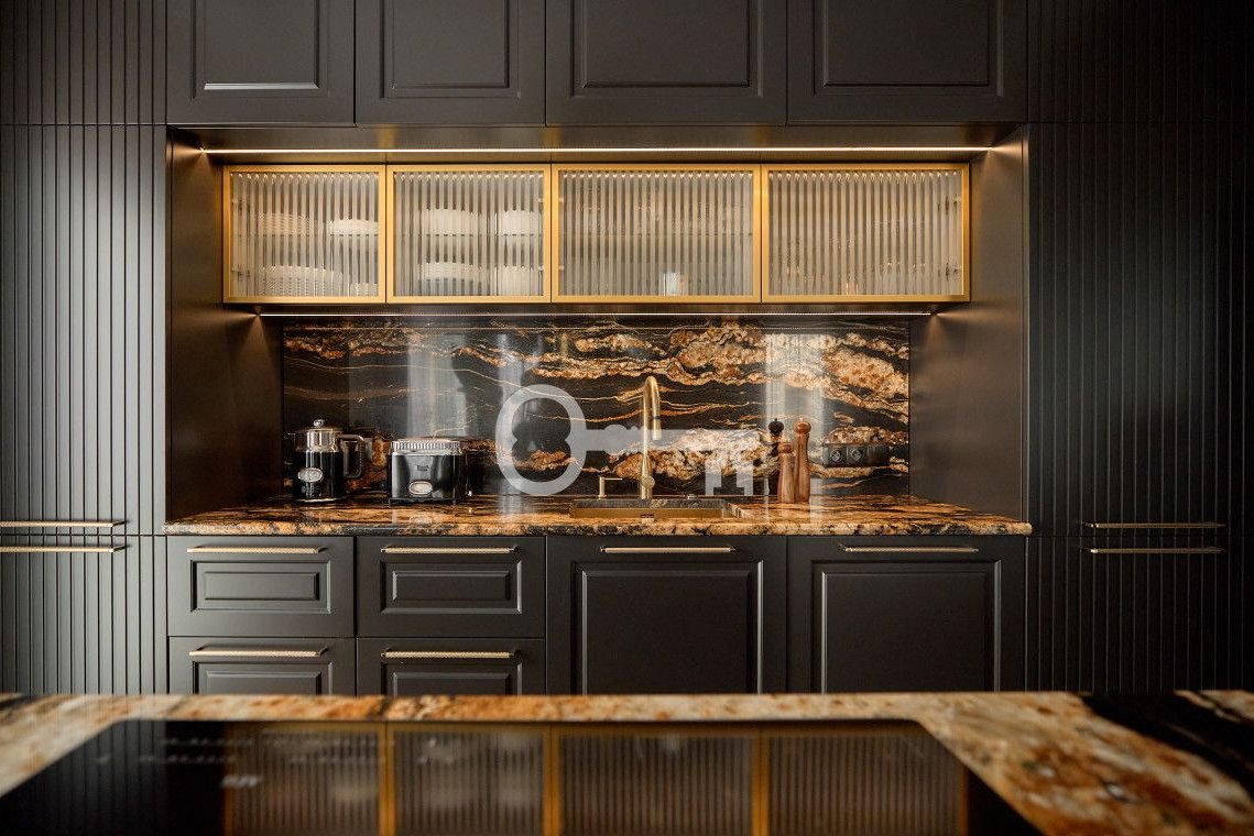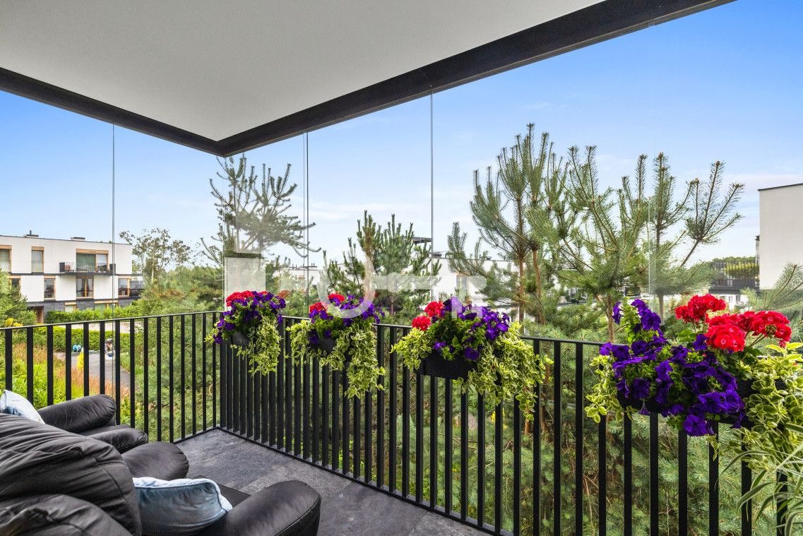The heart of the apartment is a spacious living room with a dining area and a custom-designed designer kitchen. Large windows bring in plenty of natural light and lead to a large glazed balcony surrounded by greenery. It is the perfect place for a morning coffee or a peaceful evening in quiet natural surroundings - a level of privacy rarely found in modern developments.