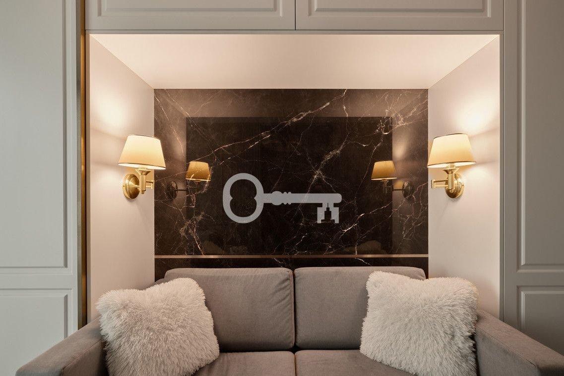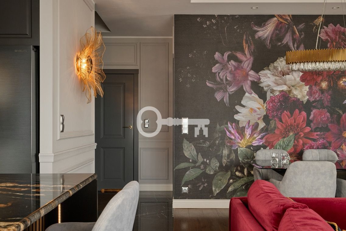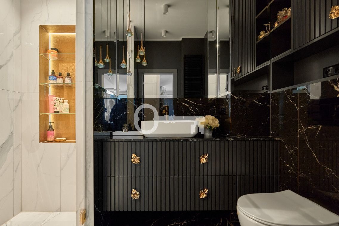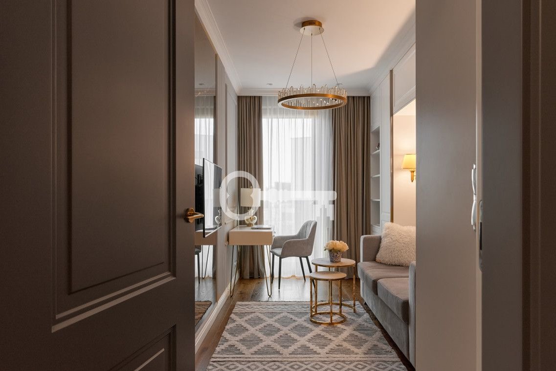 The apartment has been finished to a high standard using premium-class materials. The floors are covered with natural oak boards, while the kitchen and bathrooms feature high-quality stone and carefully selected fittings from renowned brands.