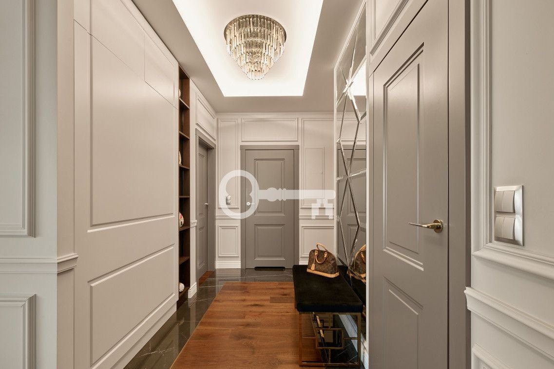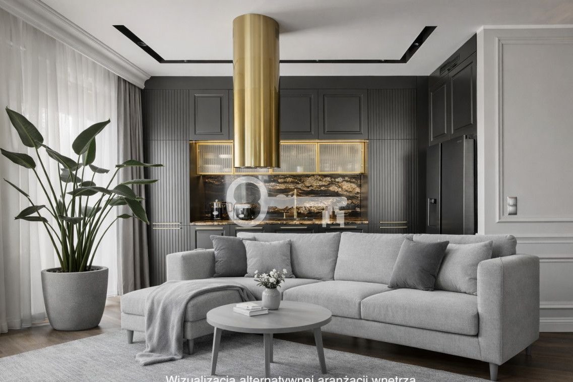 Apartament został wykończony w wysokim standardzie z wykorzystaniem materiałów klasy premium. Na podłodze znajduje się naturalna deska dębowa, a w kuchni i łazienkach zastosowano wysokiej jakości kamień oraz starannie dobrane wyposażenie renomowanych marek.