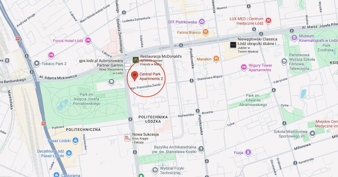 Mieszkanie znajduje się w centrum Łodzi, w bliskim sąsiedztwie Politechniki- krótki spacer dzieli nas od porannych zajęć, nie stoimy w korkach czy w zatłoczonych tramwajach.