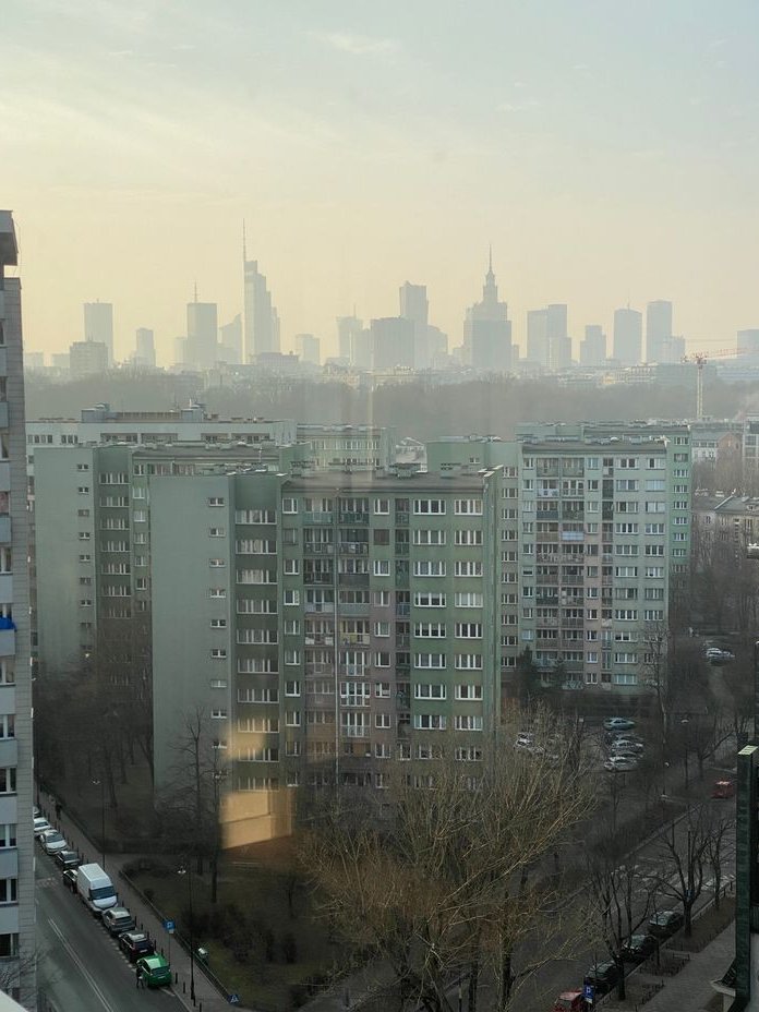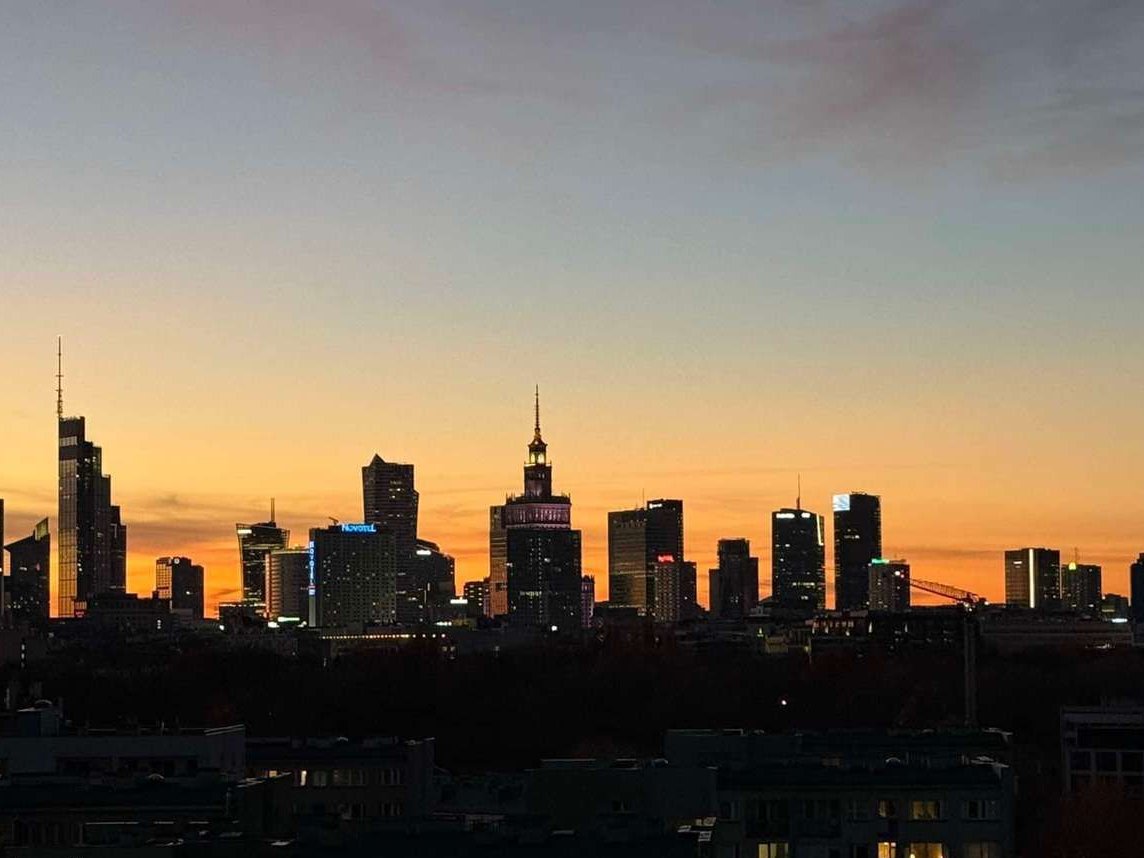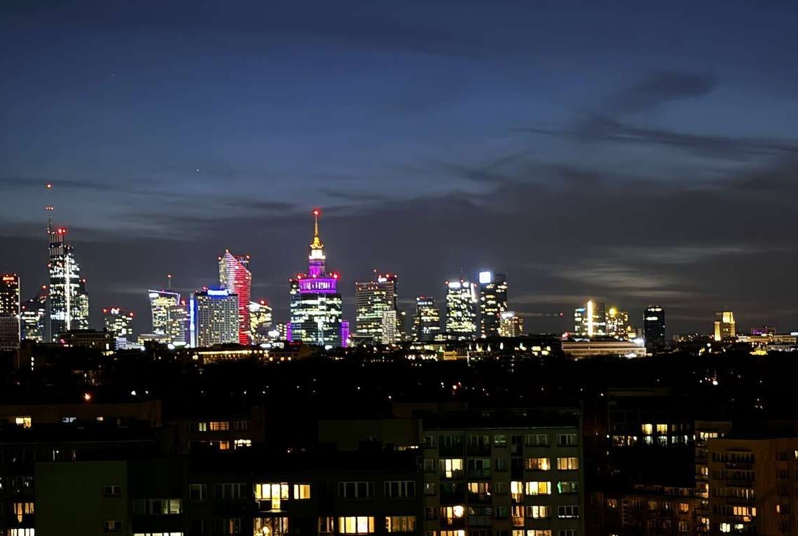 widok: panoramiczny w 3 strony świata – PKiN, Wisła, Zamek Królewski, Stadion Narodowy