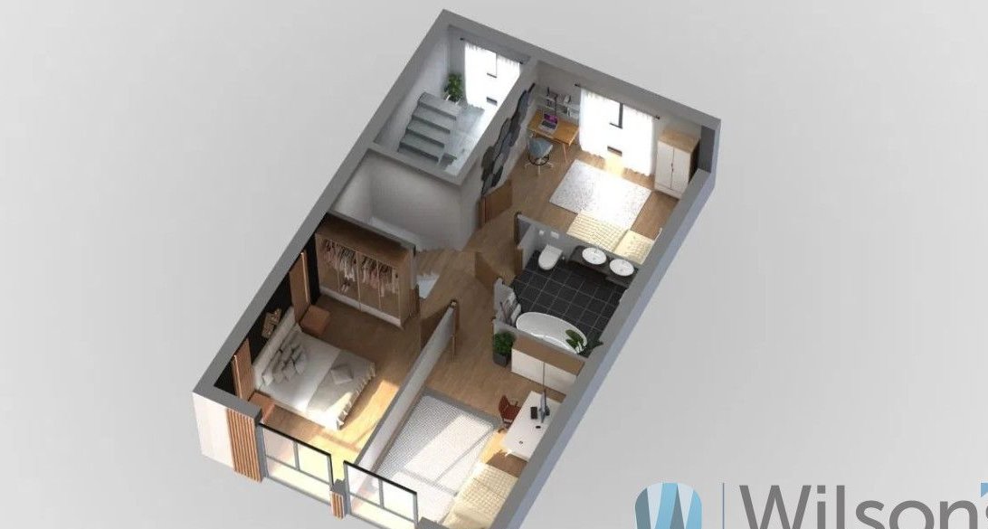 Apartament to przestronne, dwupoziomowe wnętrze z własnym ogrodem i pełną klimatyzacją: