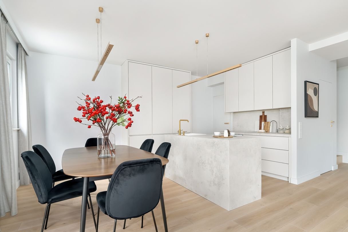 Na sprzedaż apartament, gotowy do wprowadzenia w willi miejskiej w zabudowie bliźniaczej z tarasem na dachu, dwoma miejscami parkingowymi i ogródkiem, klimatyzacją, garderobą i ogrzewaniem podłogowym.
