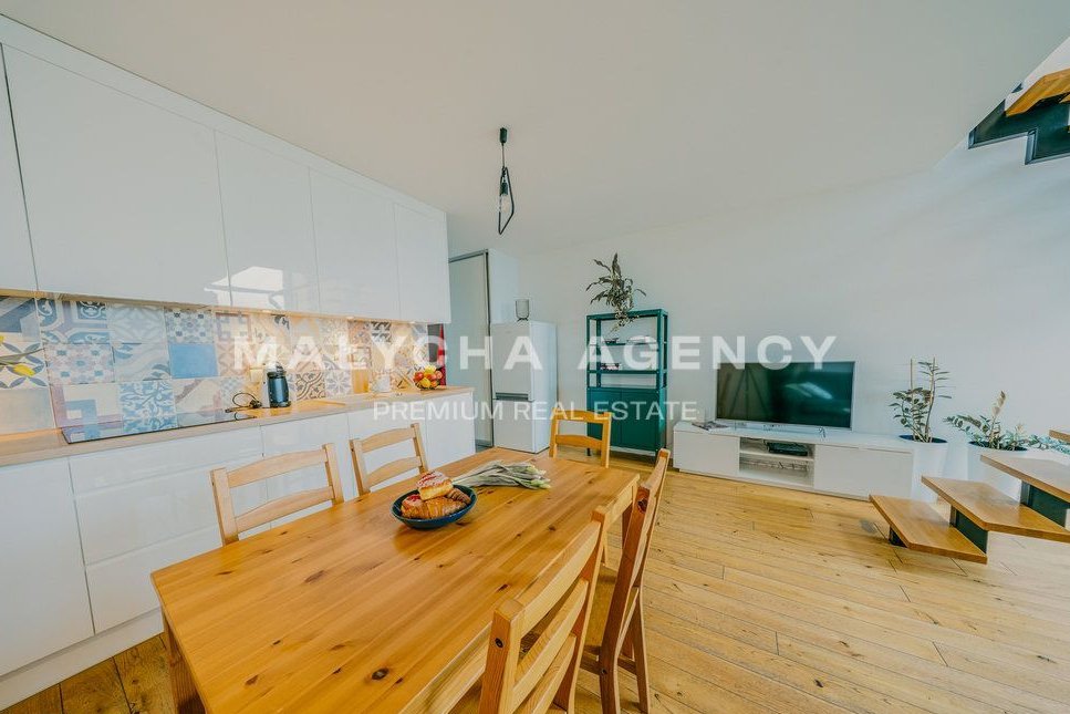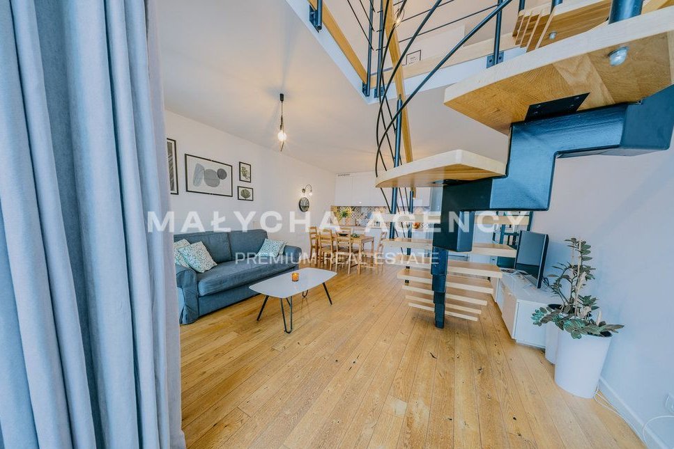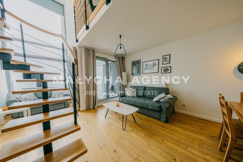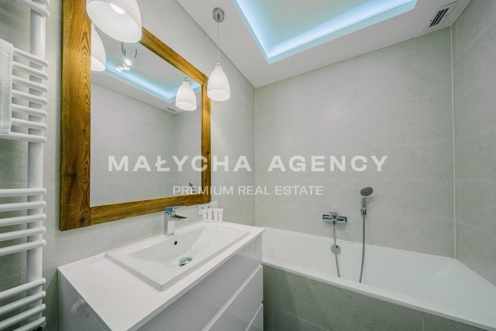 Wnętrze utrzymane jest w stonowanej, ponadczasowej kolorystyce. Drewniane podłogi, pojemne zabudowy szaf oraz w pełni wyposażona kuchnia (płyta indukcyjna, lodówka, kuchenka mikrofalowa oraz zmywarka) podkreślają funkcjonalny i przytulny charakter apartamentu.