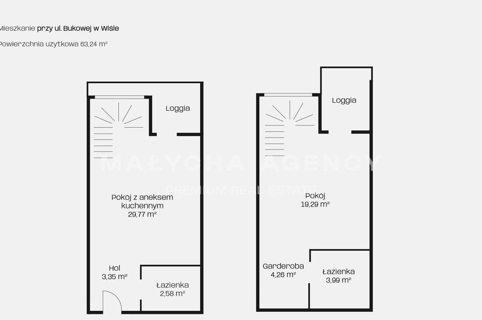 Opis nieruchomości - Dwupoziomowy apartament o powierzchni 63,24 m² z przeszklonymi balkonami i spektakularnym widokiem na góry.