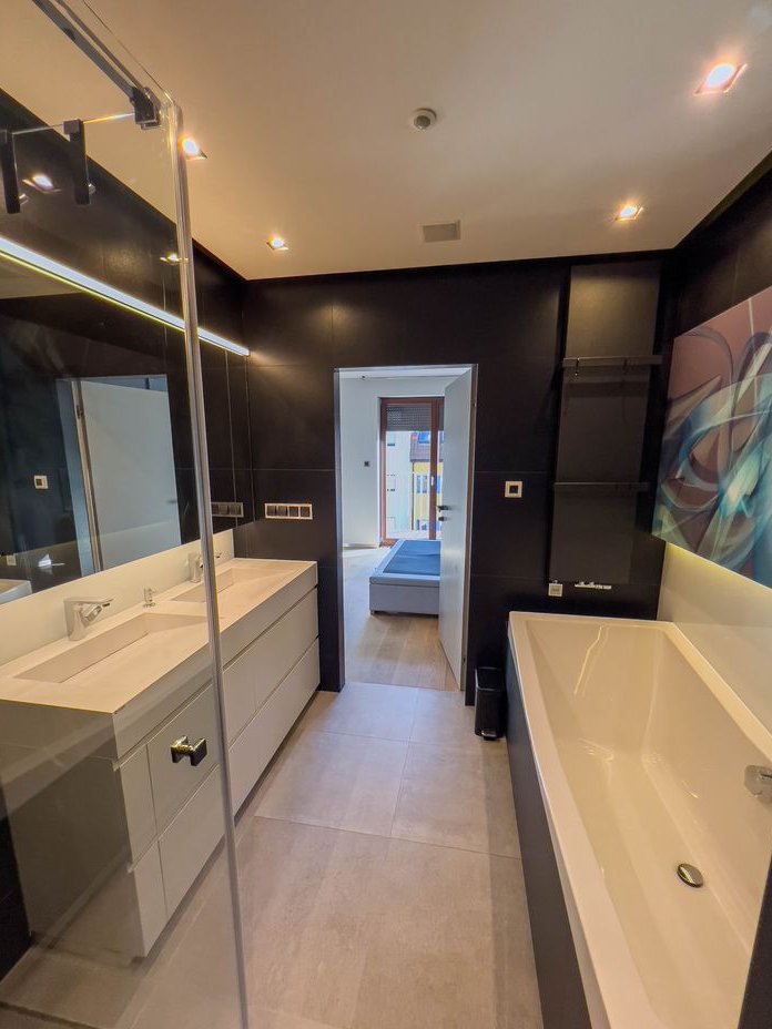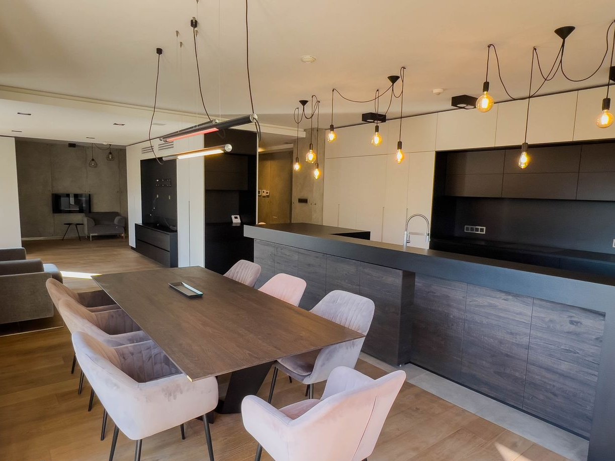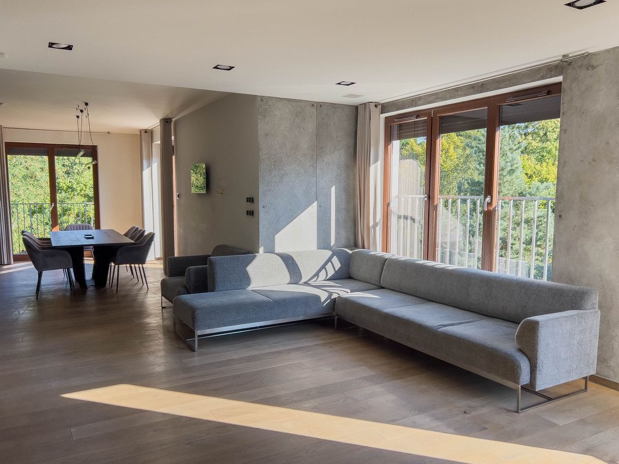 Spacious apartment for sale with a total area of 208.5 m², located on the third floor of a multi-family building, right next to the picturesque Skowroni Park. The property consists of two units, measuring 135 m² and 73.5 m² respectively. Currently, they are combined into one functional apartment, offering the flexibility to use it as a single large residence or divide it into two separate apartments.