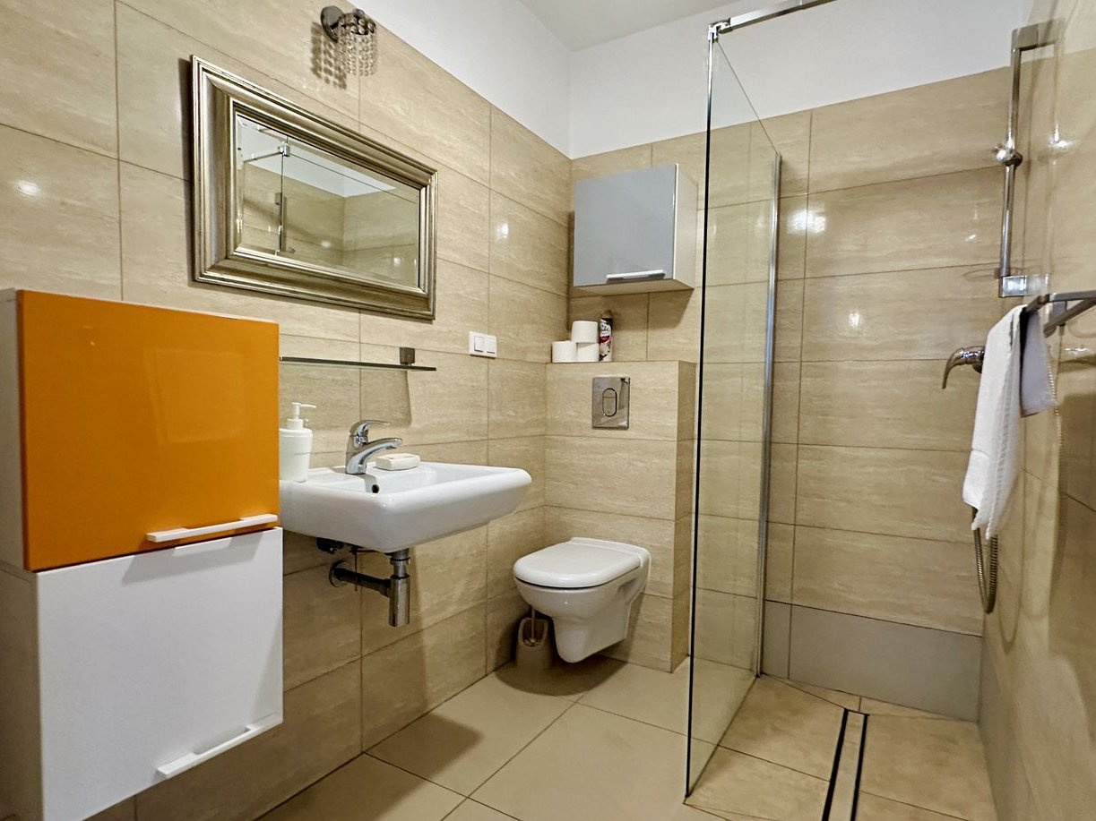Apartament ma 52 m2 i składa się z salonu z kuchnią, 2 sypialni, łazienki, przedpokoju, a także dużego tarasu. Do apartamentu przynależy oznaczone miejsce postojowe w garażu oraz komórka lokatorska. Apartament jest sprzedawany z całym wyposażeniem i jest gotowy do zamieszkania lub wynajmu.
