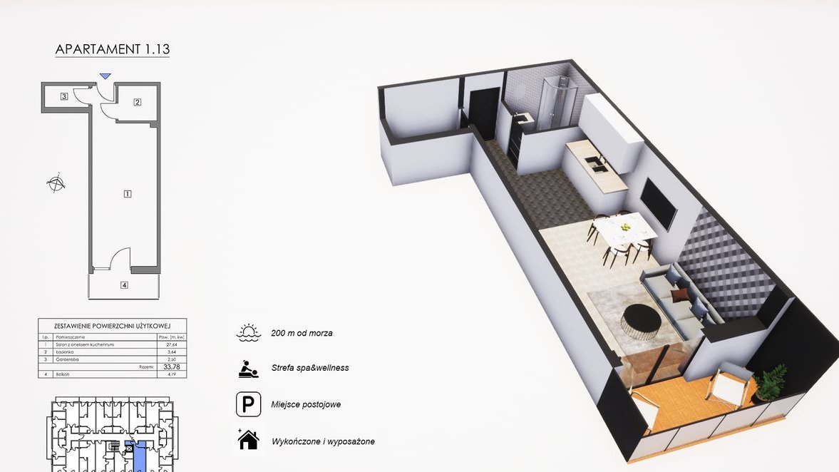Niniejsze ogłoszenie dotyczy apartamentu 1.13 położonego na pierwszym piętrze.