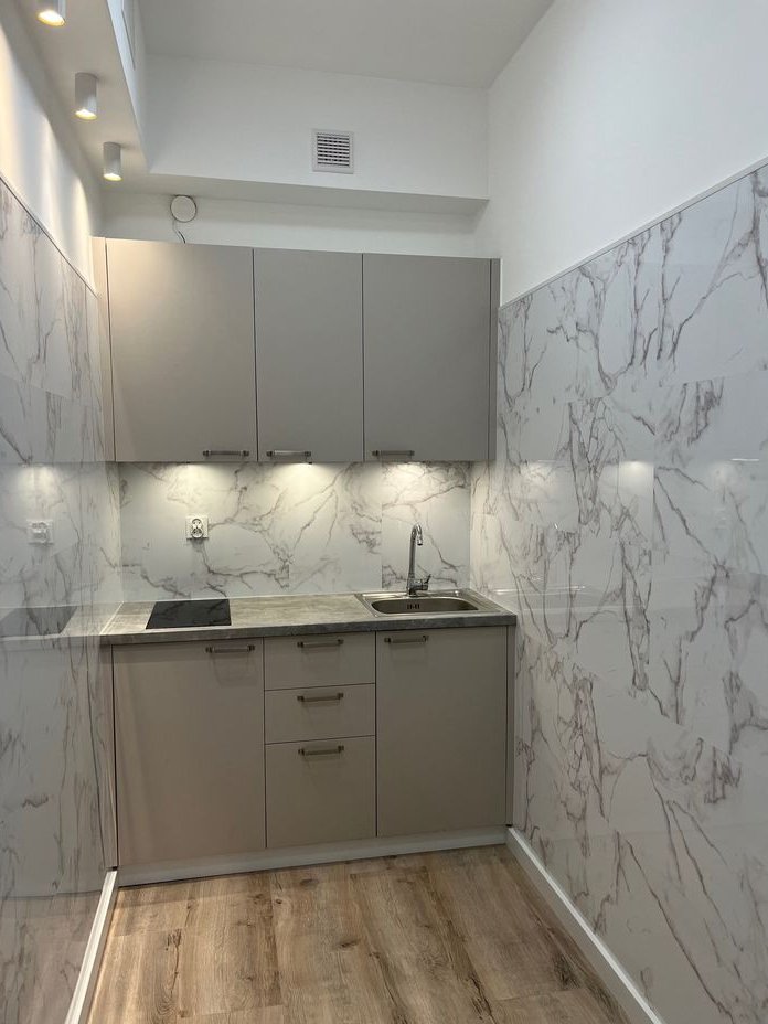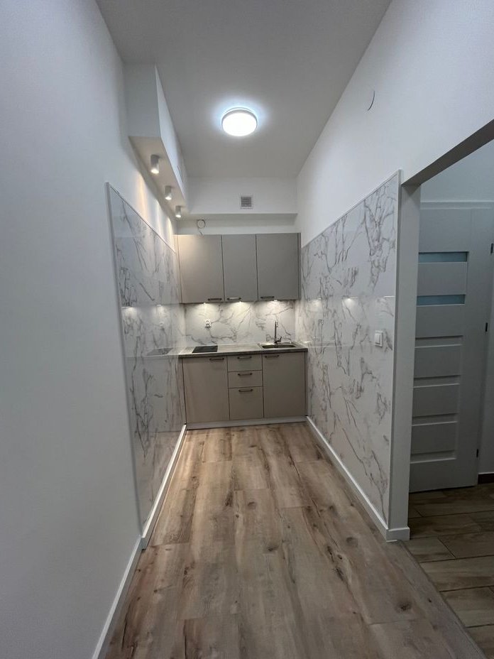 Mieszkanie po generalnym remoncie (podłogi, panele ścienne, zabudowa kuchenna, nowe oświetlenie) - gotowe do wprowadzenia. Jasny pokój z osobną kuchnią, łazienka z prysznicem i przedpokój.
