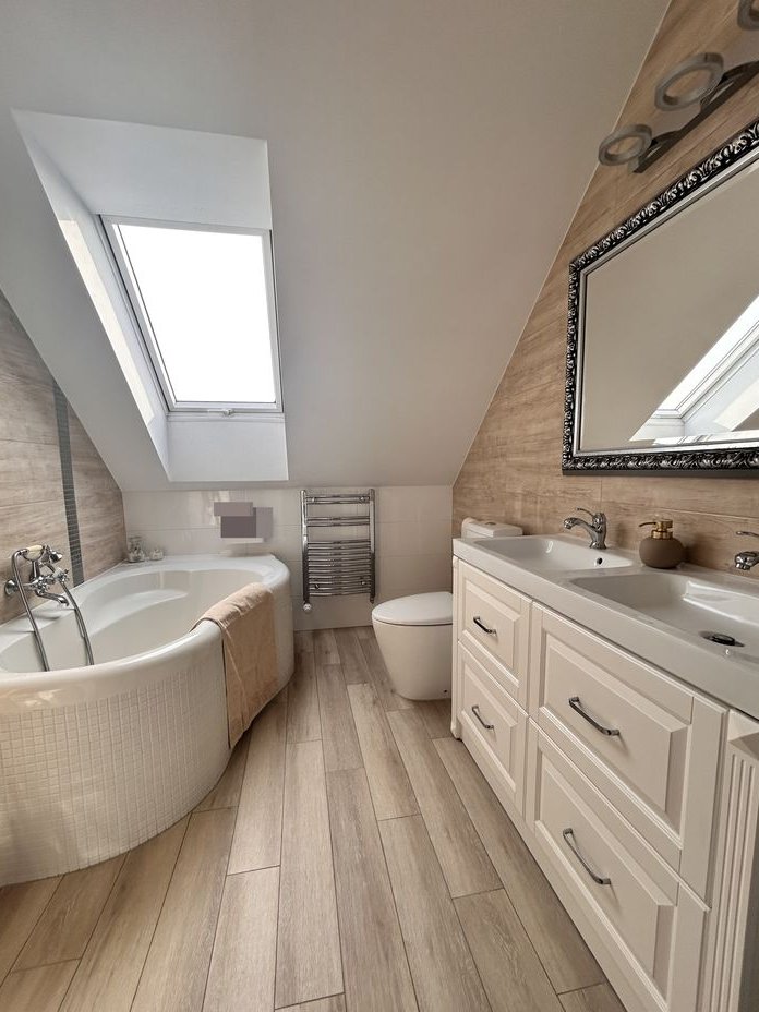 Z przedpokoju wejście na strych, gdzie znajduje się miejsce do przechowywania.