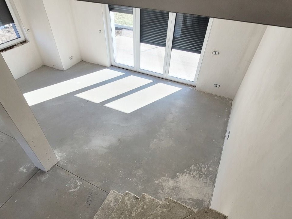 na piętro prowadzą betonowe schody zlokalizowane przy salonie.