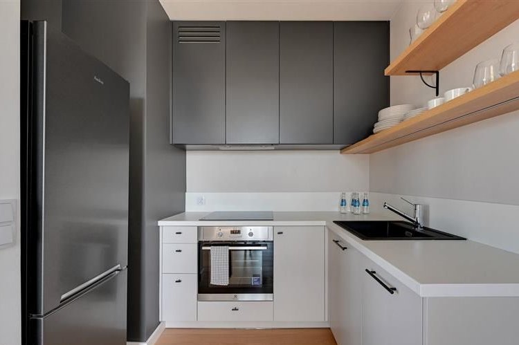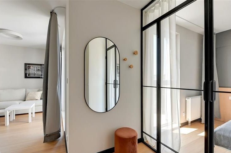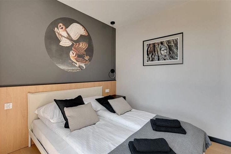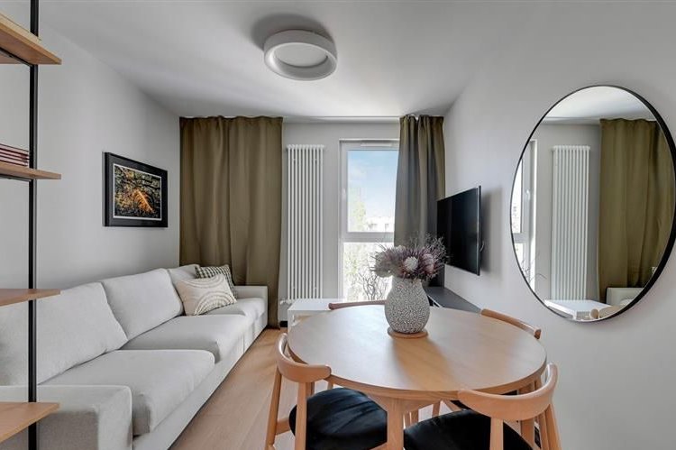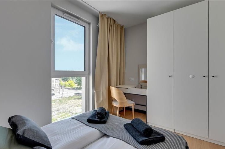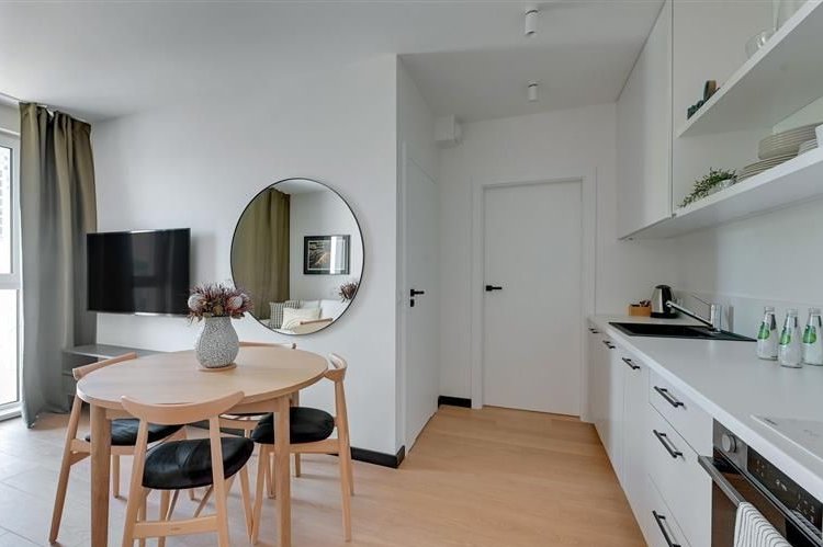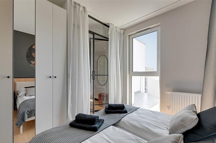 Apartament na piątym piętrze w budynku z windą z widokiem na panoramę miasta o nowoczesnym designie został wewnętrznie podzielony na dwa niezależne dwupokojowe lokale, co czyni go idealnym rozwiązaniem pod wynajem krótkoterminowy lub długoterminowy. Oba segmenty zostały zaprojektowane z dbałością o każdy detal składają się z pokoju dziennego z w pełni wyposażonym aneksem kuchennym, sypialni i łazienki z wc oferując komfort i funkcjonalność przyszłym mieszkańcom. Jeden z apartamentów posiada taras.