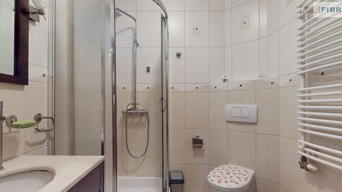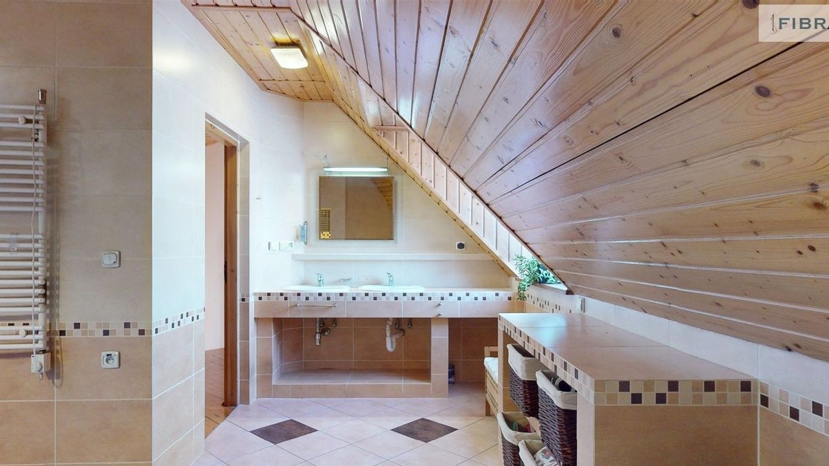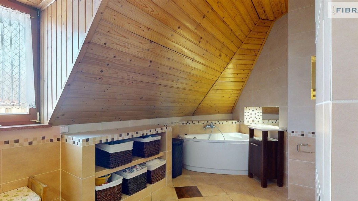 - Obszerna łazienka z wanną i natryskiem, dwie umywalki, spokojne poranki przed wyjściem do pracy