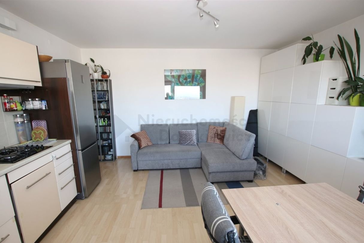 Pokój dzienny z aneksem kuchennym 21.62m2 - na podłodze panele.