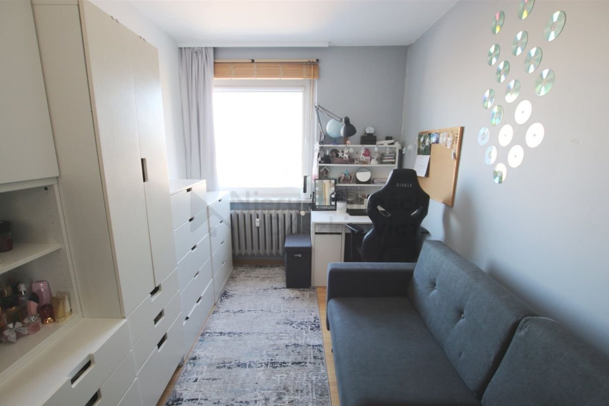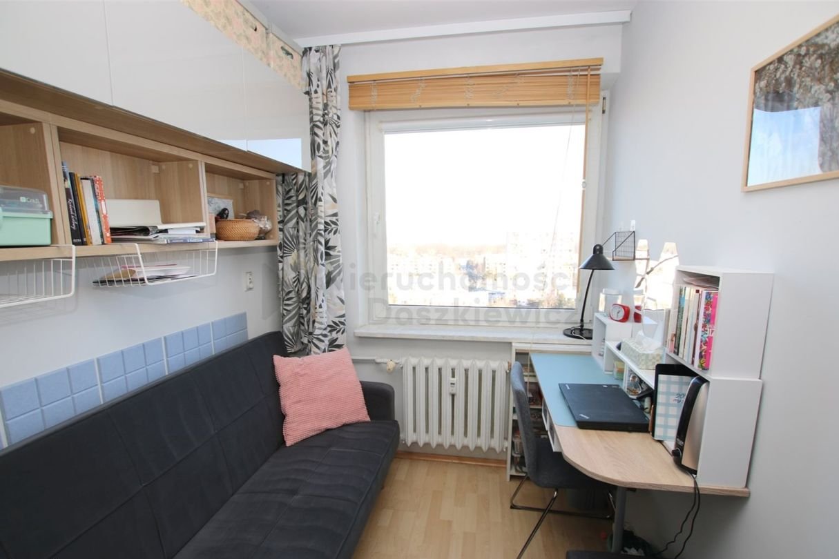 Pokój 11.95m2 - na podłodze panele, dodatkowo zabudowana jest pojemna szafa wnękowa.