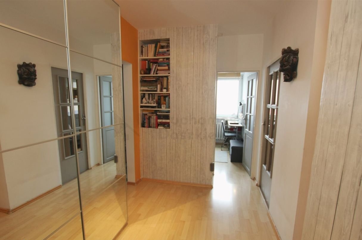 Hol 8.1m2 - na podłodze panele, dodatkowo znajdziemy tu pojemną szafę na ubrania.