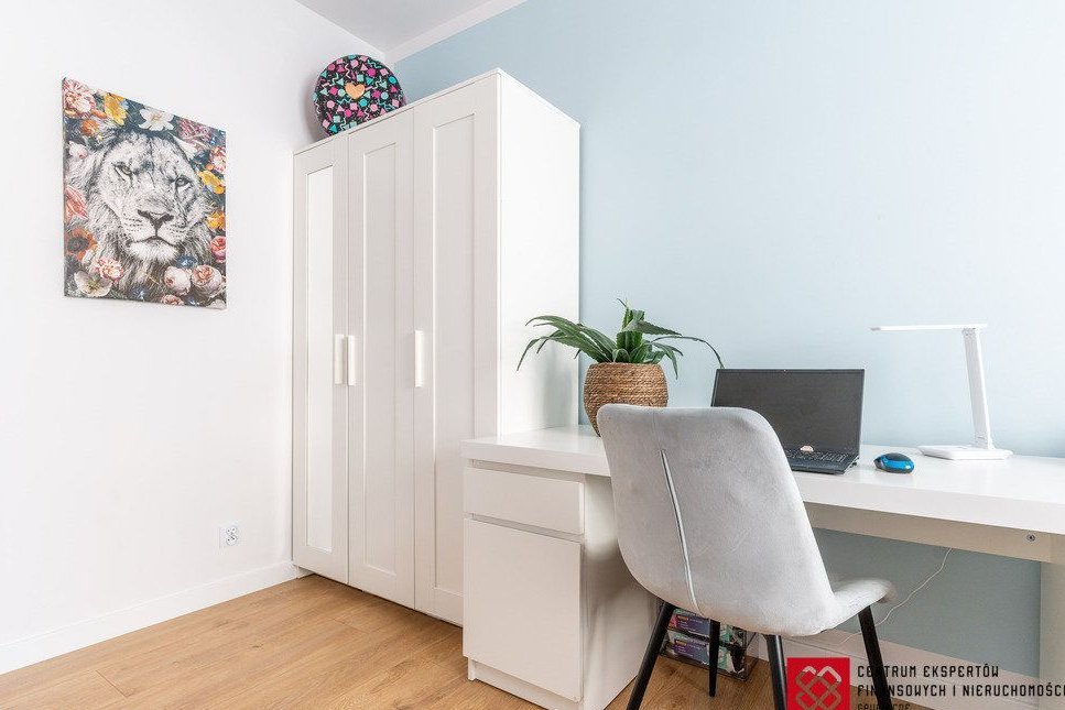 Mieszkanie zostało wykończone w wysokim standardzie, jest jasne, bardzo dobrze doświetlone i ma przemyślany, funkcjonalny układ pomieszczeń.
