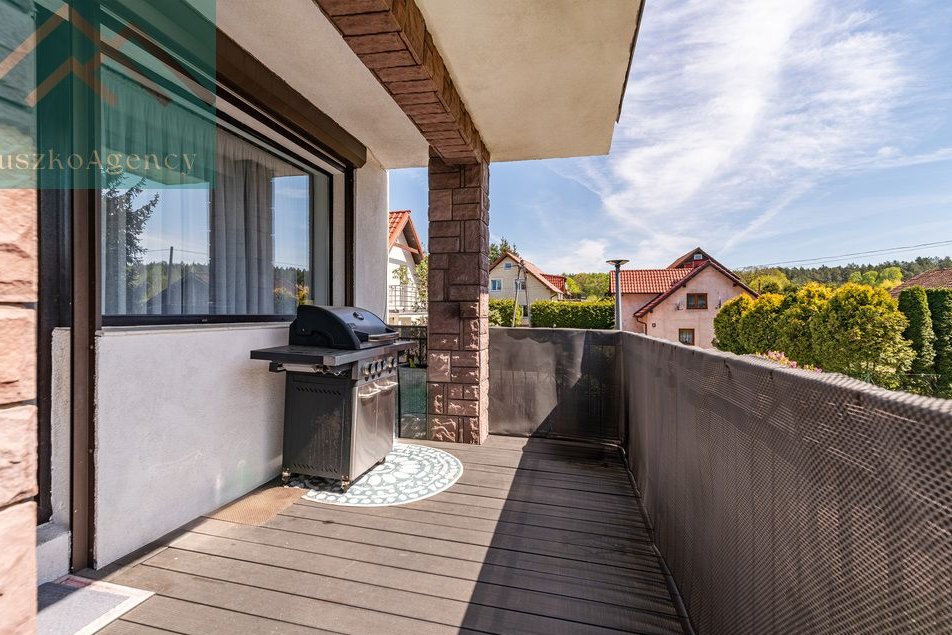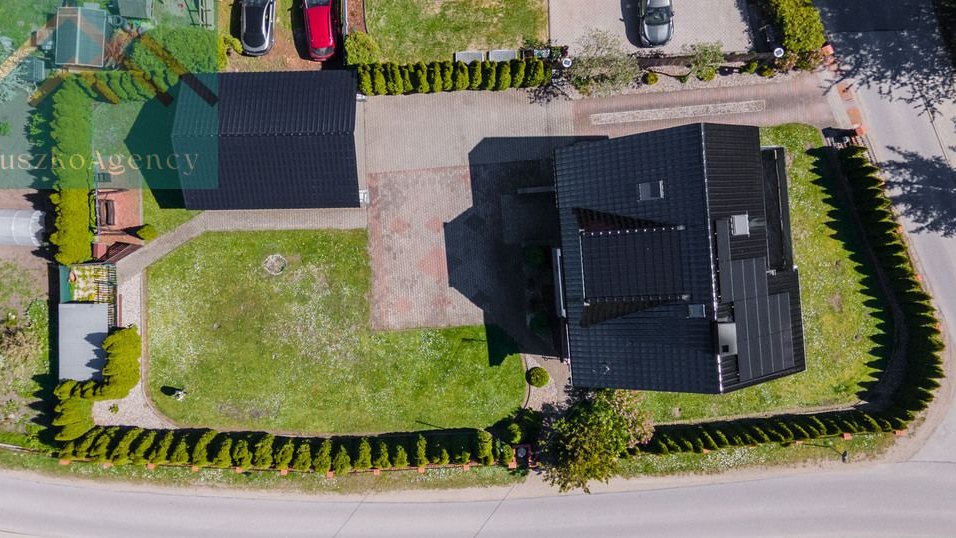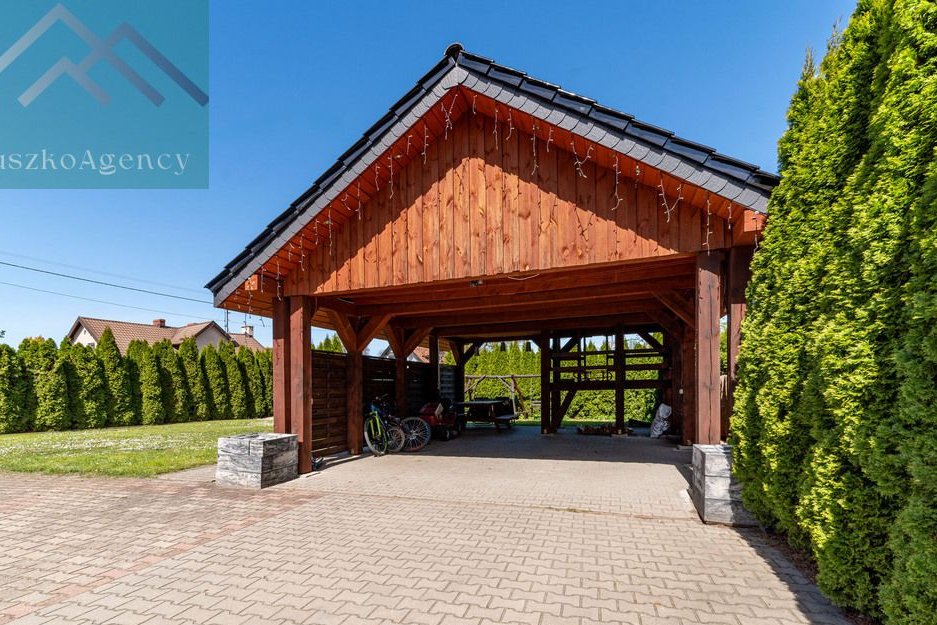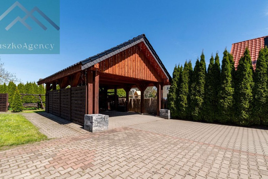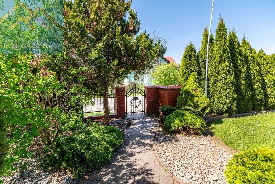 Powierzchnia 931m2, doskonale zagospodarowana z licznymi nasadzeniami tworzącymi naturalną osłonę, zapewniającą jeszcze większą kameralność. Działka jest częściowo zabudowana solidną wiatą biesiadną z miejscem zabaw dla dzieci. Na podwórzu bez problemu zaparkują trzy samochody. Nieruchomość jest w pełni ogrodzona estetycznym murkiem klinkierowym z elementami kutego metalu. Wjazd na posesję przez automatyczną bramę. Oświetlenie nieruchomości zapewnią nam wysokie latarnie solarne.
