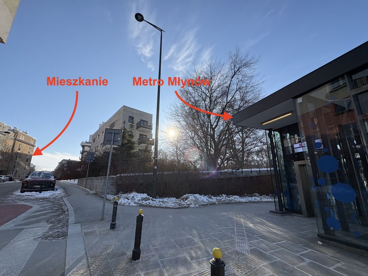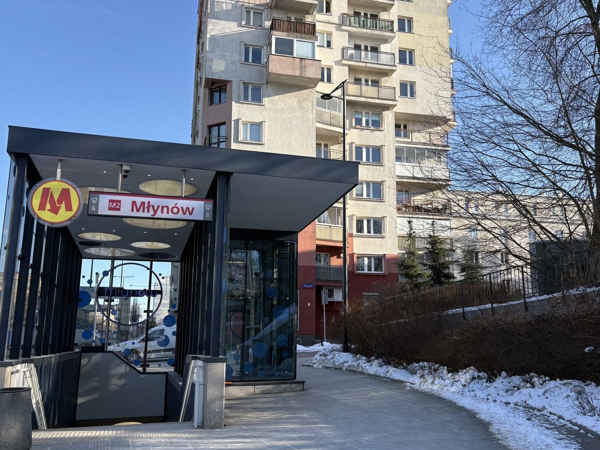 Mieszkanie jest fantastycznie skomunikowane - do stacji metra "Młynów" zaledwie 100 metrów - zatem około minuta spaceru.