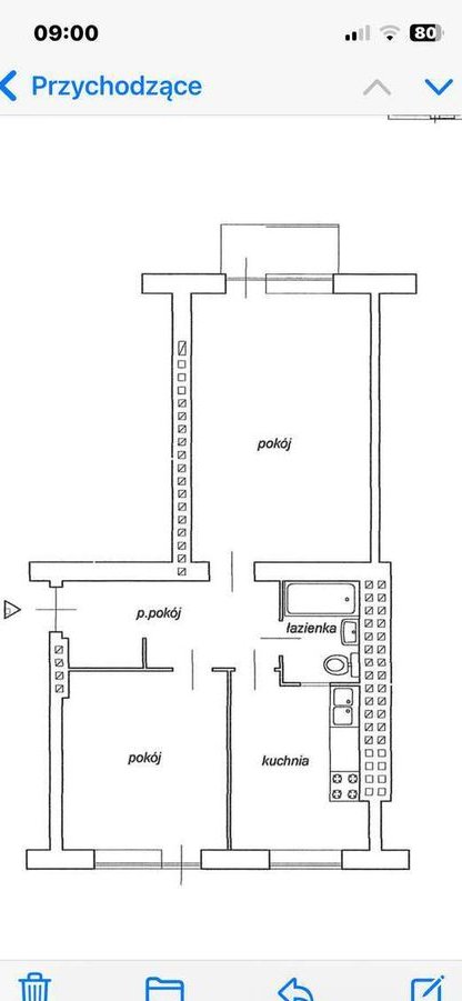 oddzielna kuchnia z oknem 9,5m3 i korytarz 7,5 m2