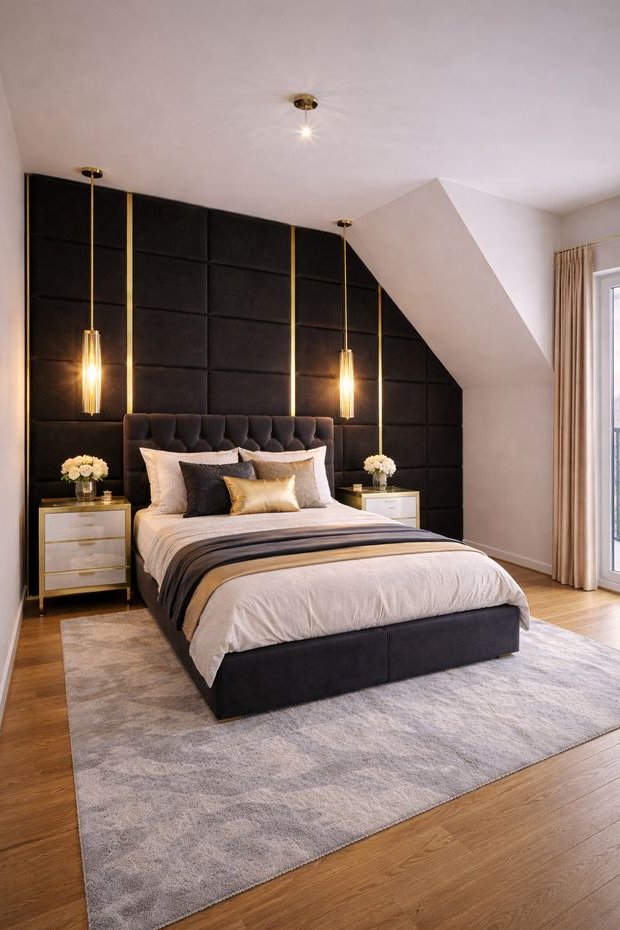 sypialnia główna z garderobą (zwisy na oświetlenie przy łóżku wraz z włącznikami)