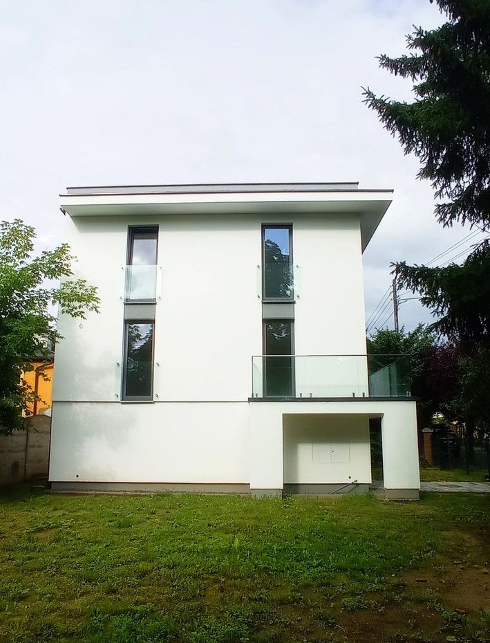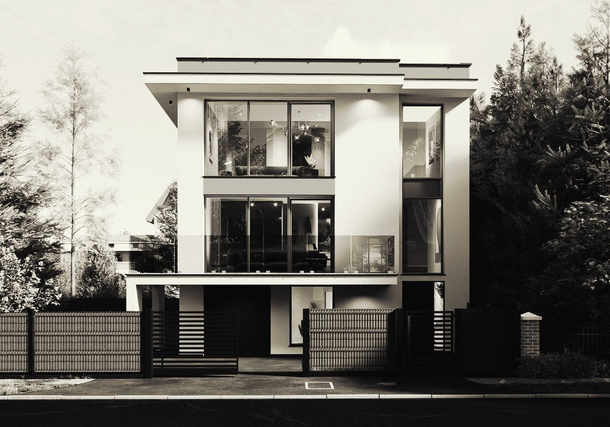 Dom to modernistyczna bryła z lat 80., gruntownie przebudowana i wyremontowana w latach 2024/2025 z myślą o współczesnym komforcie: