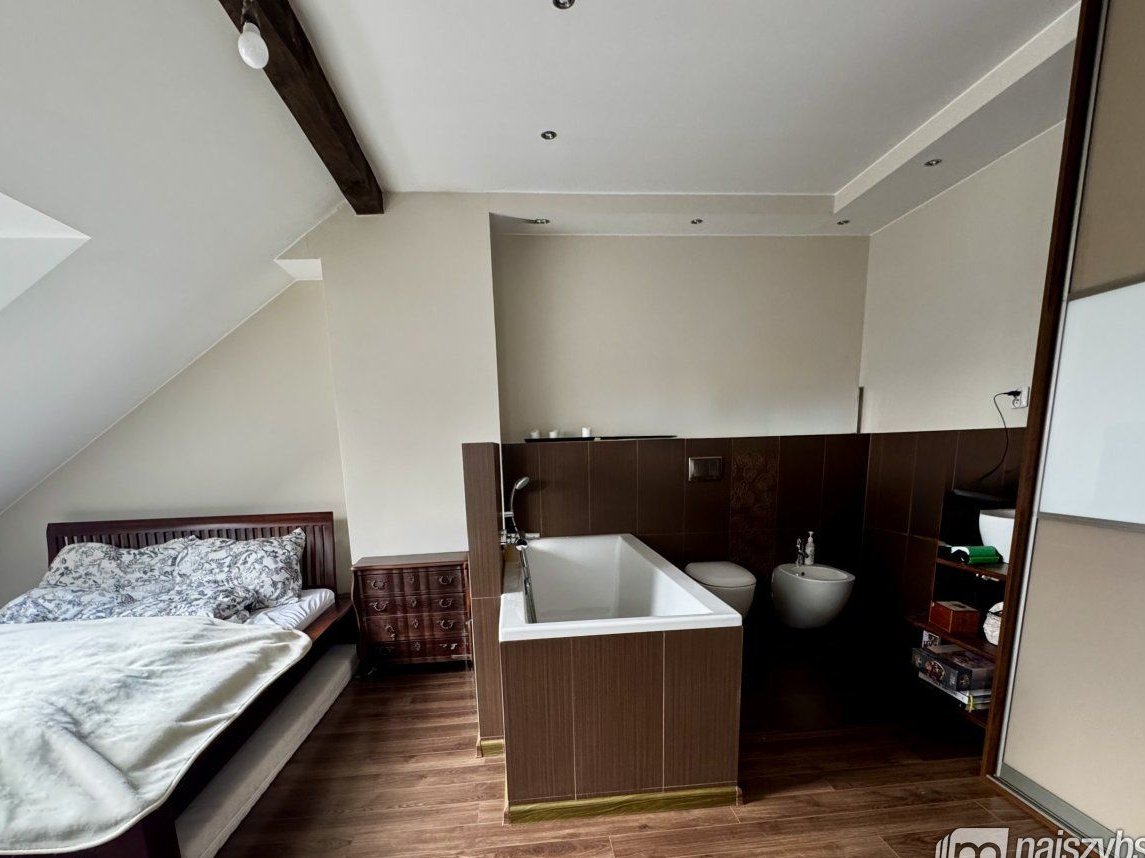 główna sypialnia z prywatną łazienką wyposażoną w wannę
