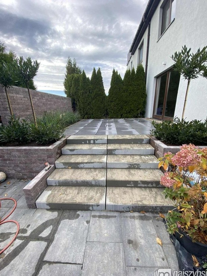 z salonu wyjście na pięknie wykończony, świeżo wyremontowany taras, z którego prowadzi zejście do ogrodu o powierzchni ok. 200 m2