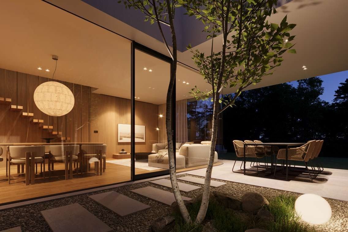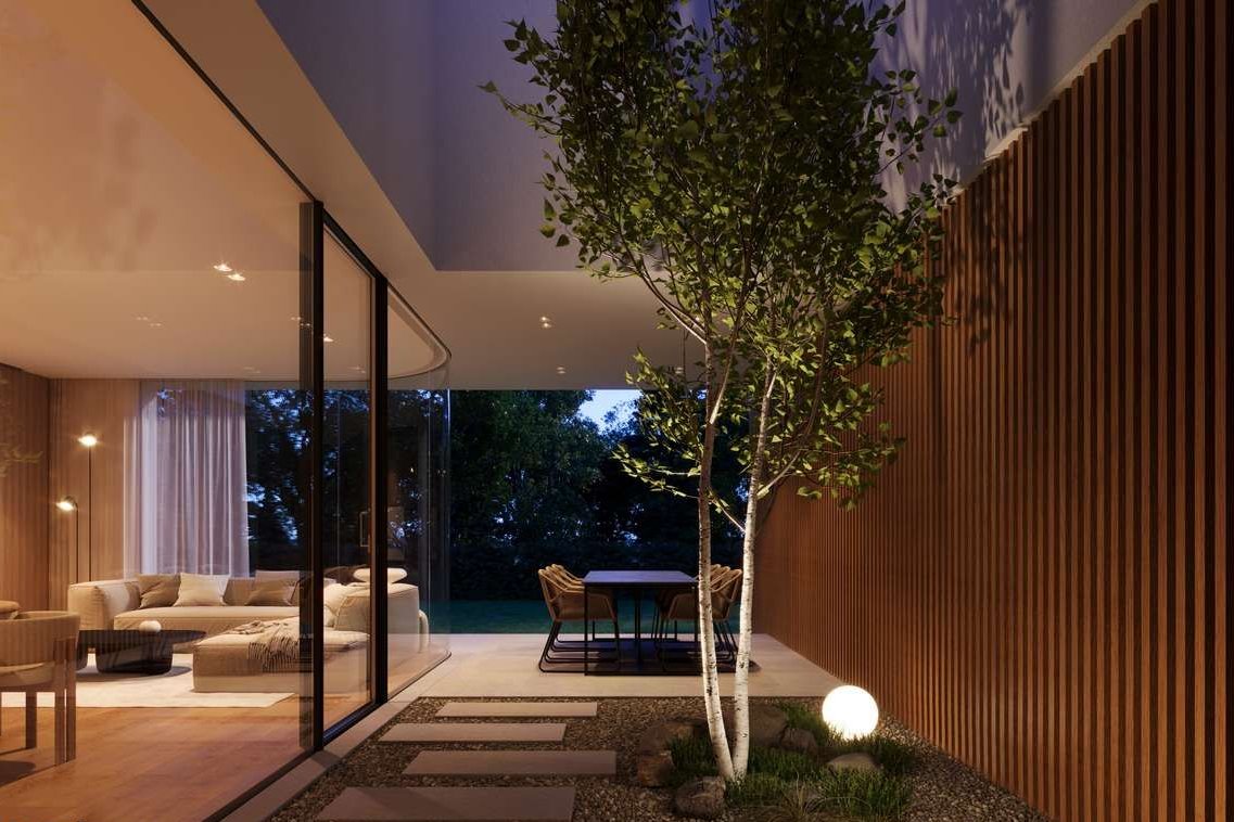 BIEGASA 7E, podobnie jak kilka innych segmentów na osiedlu, to dom atrialny. "Po co Wam to atrium? Tylko tracicie powierzchnię!" zagadnął nas znajomy architekt, który odwiedził nas, podczas prac nad koncepcją, co tylko utwierdziło nas w przekonaniu, że to świetny pomysł. W SolidEstate wierzymy, że nie żyjemy w metrach kwadratowych, ale w domach i to one tworzą naszą historię i wspomnienia. To w nich dorastają nasze dzieci. Atrium to nasz pomysł na połączenie nowoczesności z prywatnością, na zatarcie granicy między domem i ogrodem. Ustawimy w nim zewnętrzny stół na letnie spotkania z przyjaciółmi lub poczytamy książkę w upalny dzień. Gięta szybą chcieliśmy nawiązać do przedwojennej moderny wpisanej w DNA tej okolicy. Całą strefę atrium możemy oddzielić od pozostałej części ogrodu automatycznymi żaluzjami, dodatkowo podnosząc prywatność. Wydzielenia ogrodów za pomocą wysokich, dorosłych żywopłotów również zaprojektowaliśmy kierując się potrzebą prywatności mieszkańców.