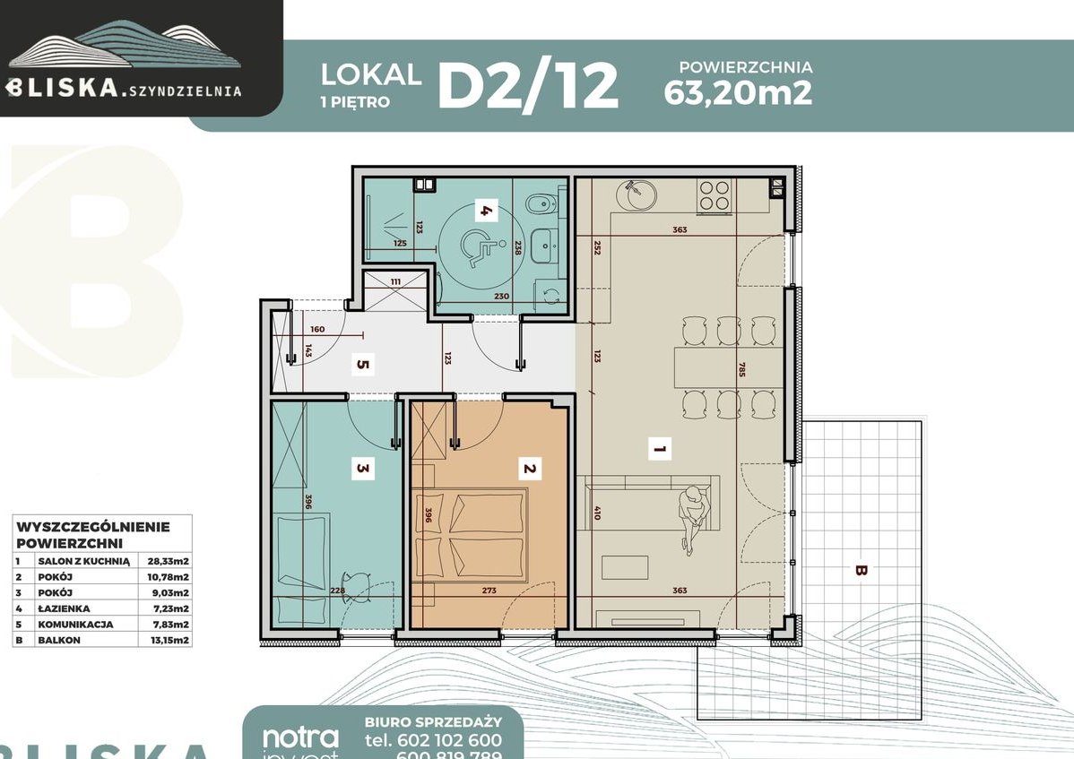 3-pokojowe mieszkanie numer D2/12 na 1. piętrze w budynku D2 w Inwestycji Bliska4.Szyndzielnia Dewelopera Notra Inwest