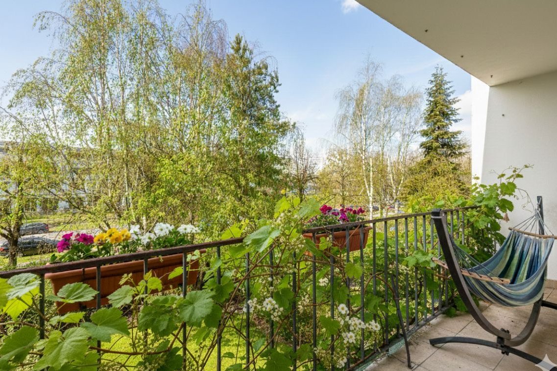 The apartment is located at the intersection of Jana Pawła Woronicza and Marzanny Streets, in a green and quiet part of Górny Mokotów.