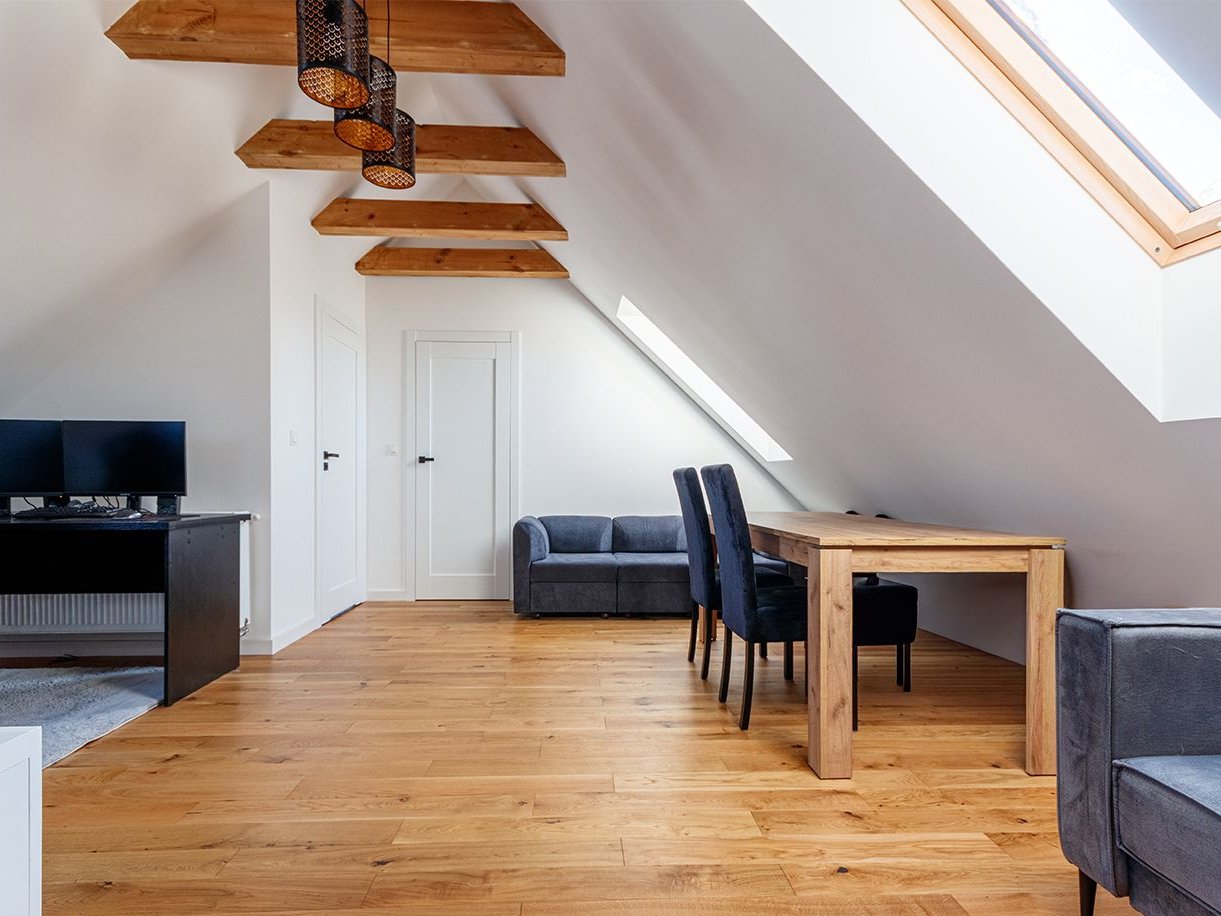 Dodatkową przestrzeń stanowi zaadaptowane poddasze, wyposażone w osobne WC oraz garderobę idealne jako sypialnia master, strefa prywatna lub przestrzeń do pracy.