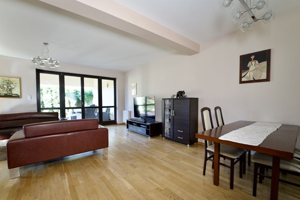 Nieruchomość została wybudowana w 2009 roku i ma łączną powierzchnię 171 m². Parter domu to przestronny salon o powierzchni 35 m² z kominkiem, który stanowi centralny punkt wnętrza, oraz częścią jadalnianą, co tworzy idealne miejsce do spędzania czasu z rodziną i gośćmi. Podłoga w salonie wyłożona jest elegancką deską dębową, dodając wnętrzu ciepła i klasy. Kuchnia jest oddzielna, z dużym oknem, co sprawia, że jest jasna i funkcjonalna.