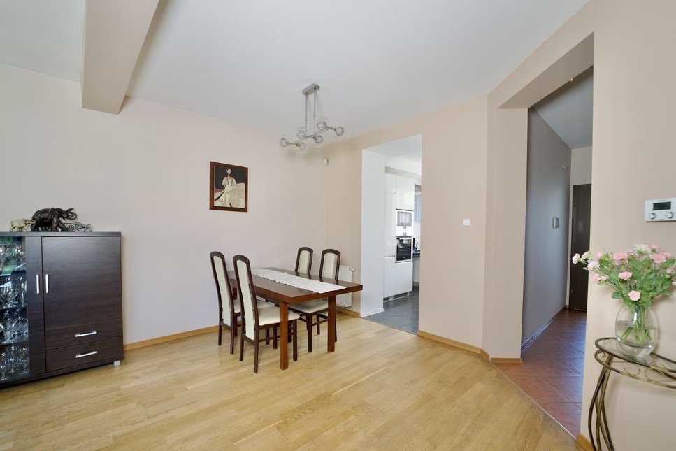 Dom znajduje się w prestiżowej dzielnicy Katowice Zarzecze, przy kameralnej i spokojnej uliczce, co gwarantuje ciszę i prywatność. Niewątpliwym atutem jest bliskość lasu, zaledwie 200 metrów od nieruchomości, co umożliwia częste spacery i kontakt z naturą. Pomimo tak spokojnego otoczenia, lokalizacja jest bardzo dobrze skomunikowana – w zaledwie 5 minut samochodem można dotrzeć do ulicy Kościuszki, co zapewnia szybki dojazd do centrum Katowic (około 20 minut), a także łatwy dostęp do Mikołowa i Tychów. Dla osób korzystających z komunikacji publicznej, przystanek autobusowy linii 937 znajduje się jedynie 2 minuty pieszo od domu.