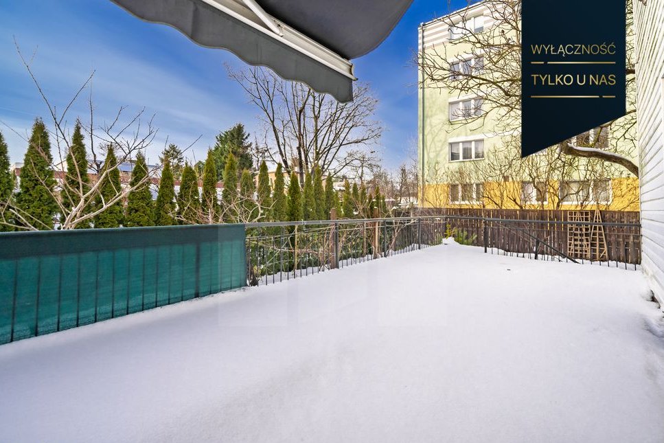 salon z jadalnią (27,76 m2), kominkiem oraz wyjściem na taras (28,00 m2) z markizą i ogród,