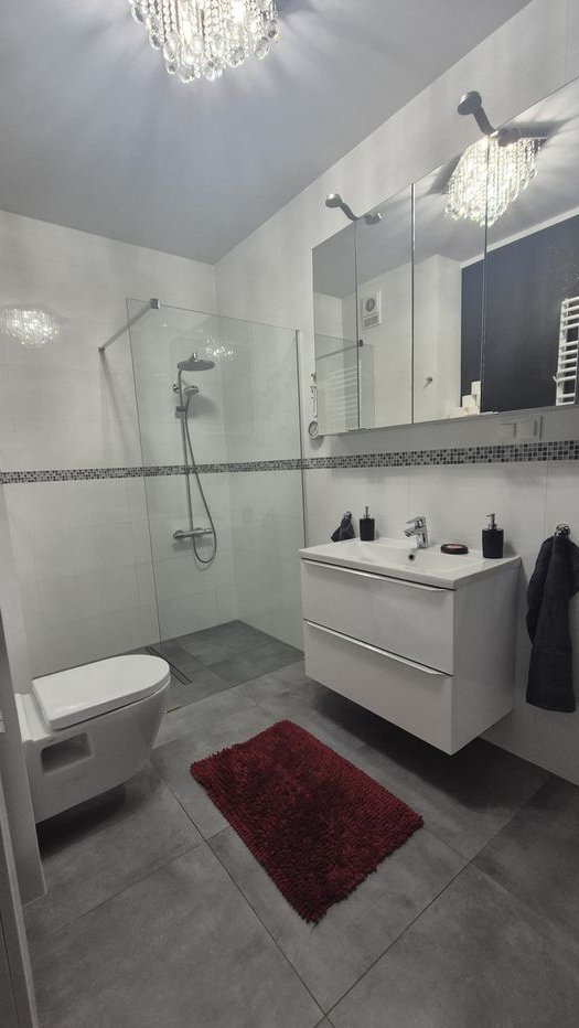 Wnętrze jest jasne, funkcjonalne i starannie wykończone z wysokiej klasy materiałów. Mieszkanie sprzedawane z większością mebli oraz kompletnym wyposażeniem AGD – gotowe do wprowadzenia.