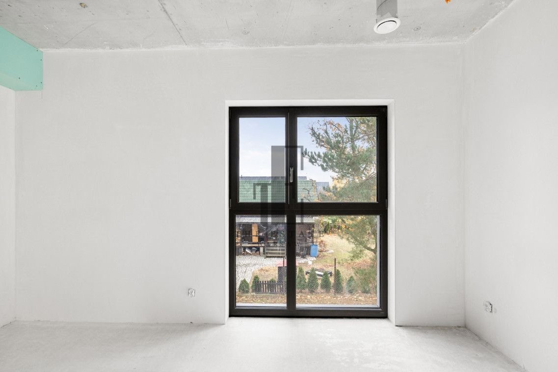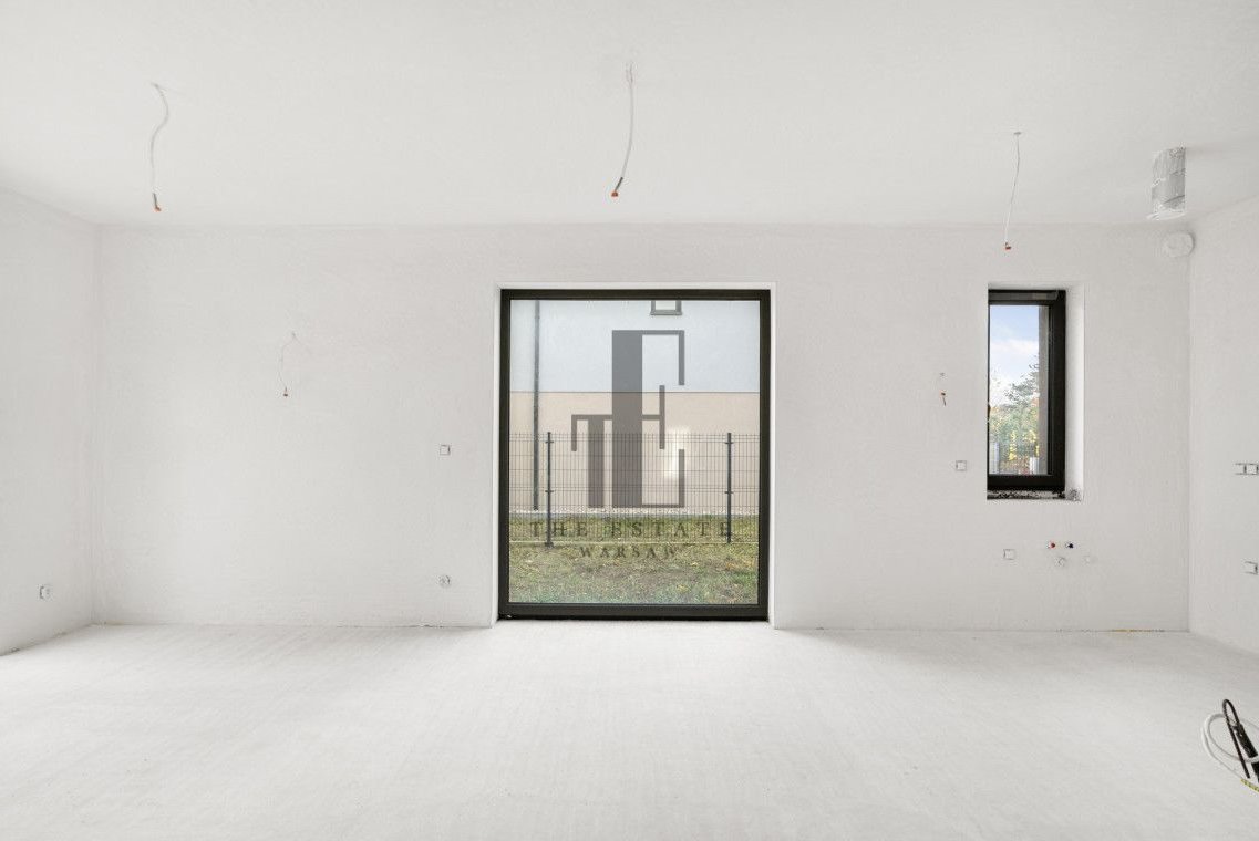 parter - przedpokój, gabinet/sypialnia gościnna, WC, pomieszczenie gospodarcze, oraz salon z dużymi oknami z aneksem kuchennym.