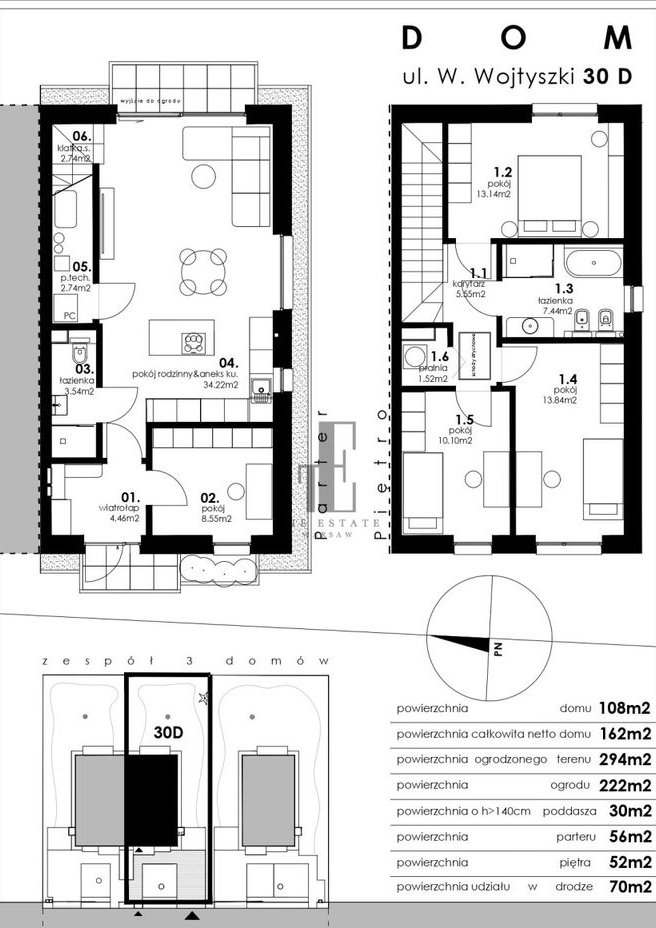 piętro - 3 sypialnie, łazienka oraz pralnia.