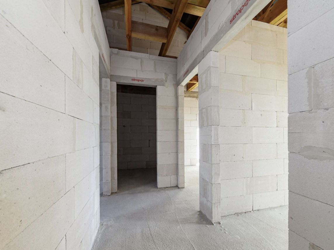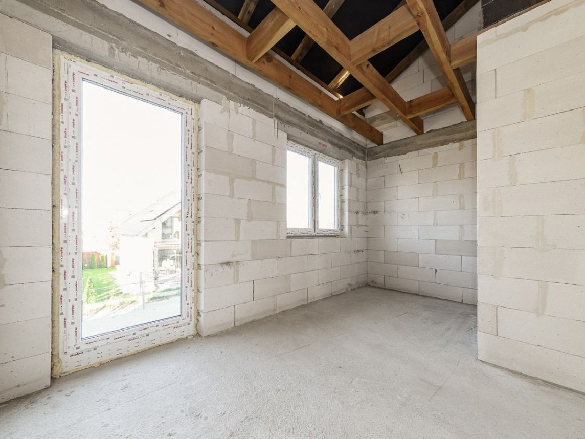 Budynek został wykonany z bloczków Solbet 600, a dach pokryty blachodachówką. W obiekcie zamontowano okna PCV z trzyszybowym szkleniem. Na parterze i piętrze przewidziano ogrzewanie podłogowe. Źródłem ogrzewania i ciepłej wody będzie pompa ciepła (wykonano już niezbędne przyłącze), montaż według według indywidualnych ustaleń.