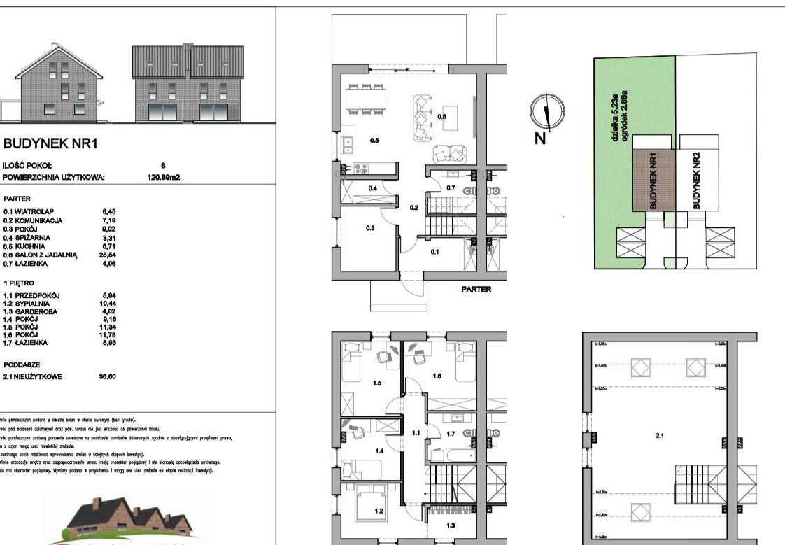 Projekt: parter + piętro + poddasze nieużytkowe