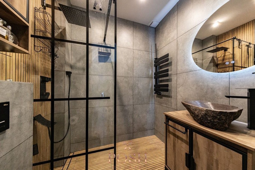 • Materiały wykończeniowe wysokiej jakości tj. gres podłogowy, panele vinylowe, meble na wymiar
