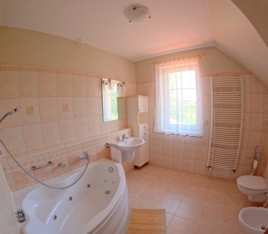 dwie łazienki (na parterze z prysznicem, oraz na piętrze z wanną z hydromasażem)