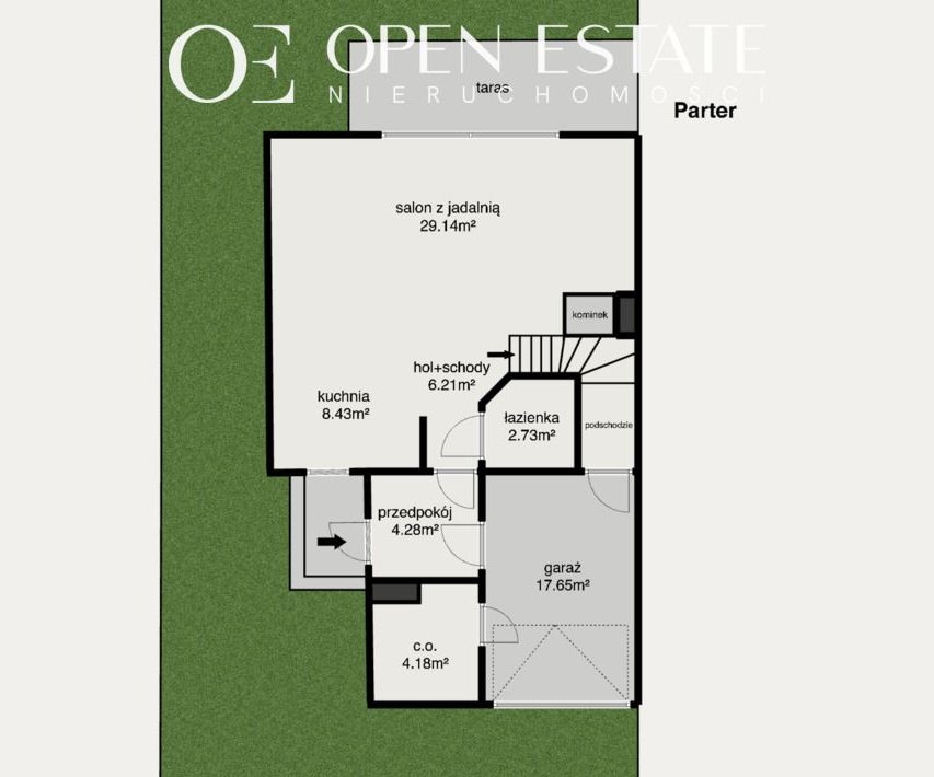 Powierzchnia całkowita nieruchomości to 117,48 m² + 46,65 m² + 18 m² oraz poddasze użytkowe. Działka o powierzchni 589 m² znajduje się na ogrodzonym terenie, co zapewnia prywatność i bezpieczeństwo.