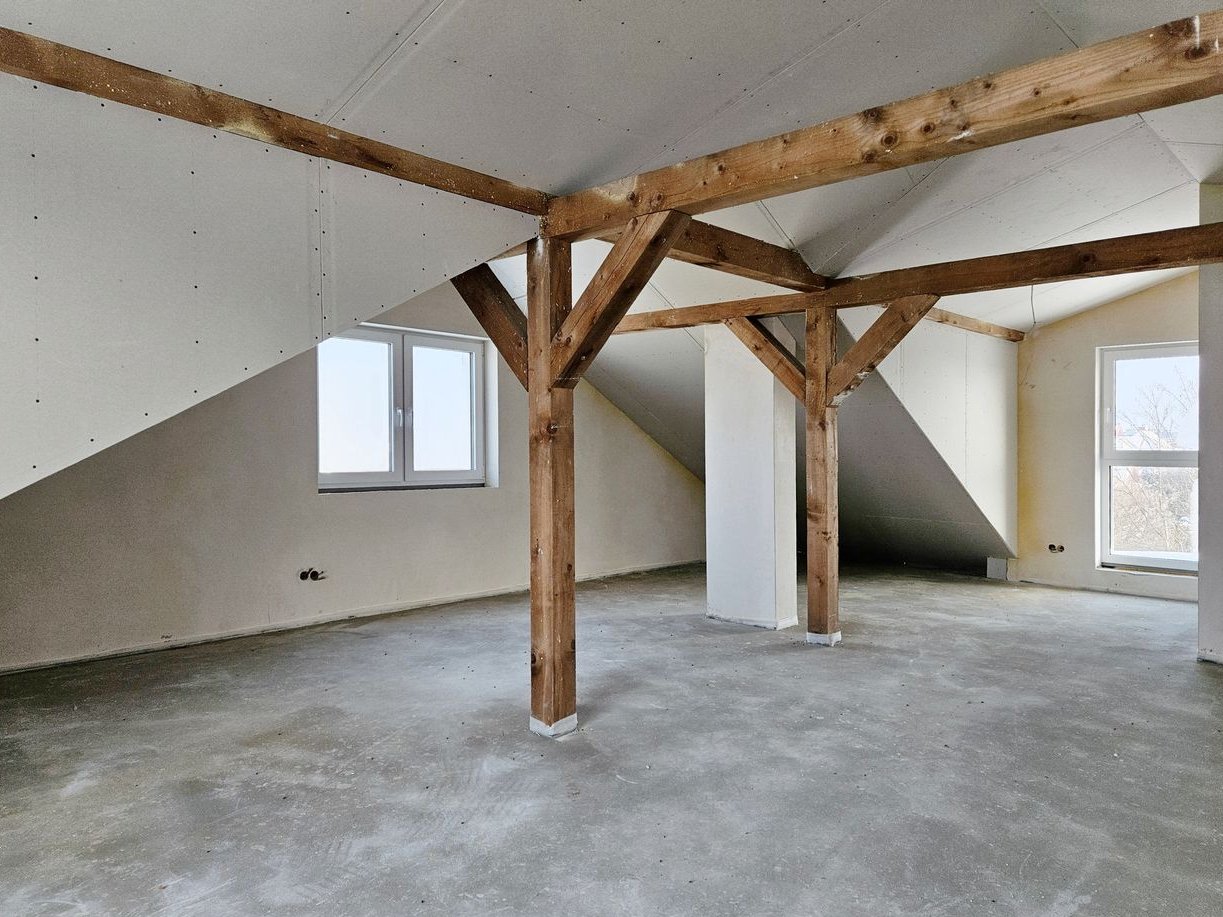 Duża, otwarta przestrzeń do dowolnej aranżacji – np. pokój hobby, pracownia, siłownia