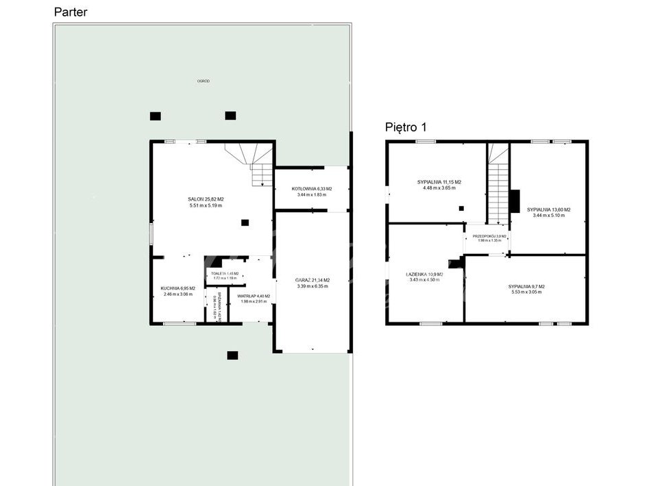 1-piętrowy dom o powierzchni użytkowej 118,28 m2 oraz przynależnej działce wielkości 303 m2.
